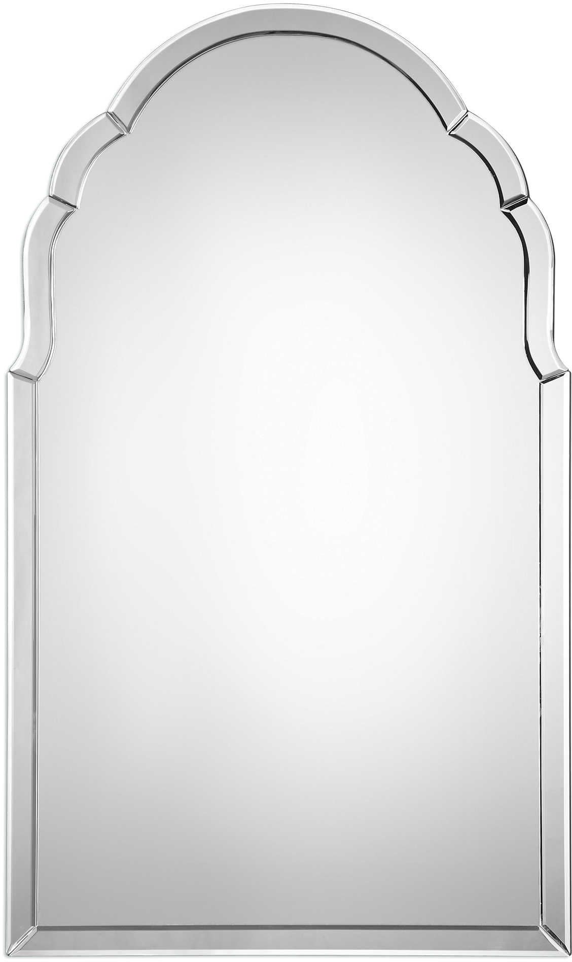 Item DescriptionA timeless classic featuring an elegantly shaped arch. This frameless mirror is constructed of curved, hand beveled mirrors with a solid wood backing painted black. Perfect for any setting and will never go out of style.