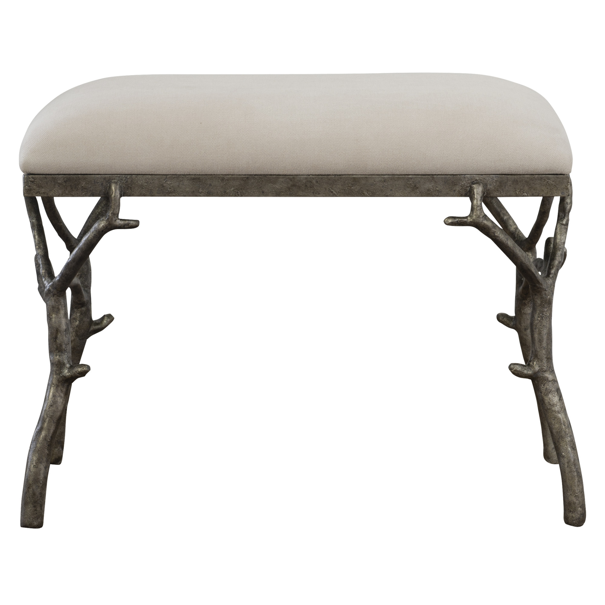- Make a whimsical statement with this molded branch accent bench featuring a heavily textured base, tailored in an polyester fabric