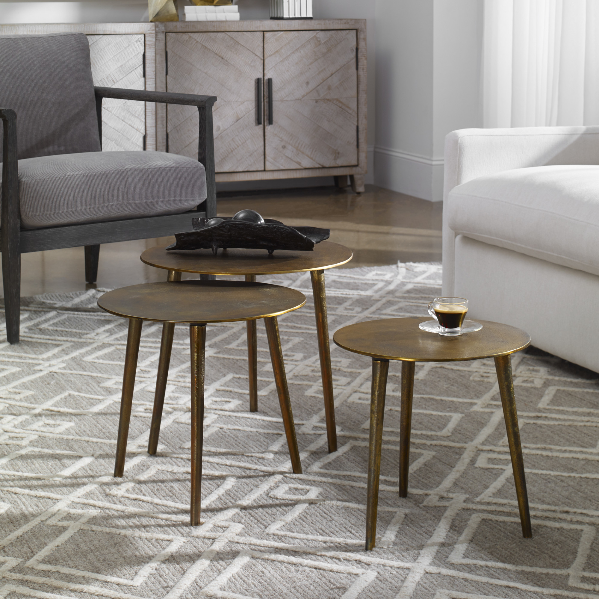 - Set of three nesting coffee tables