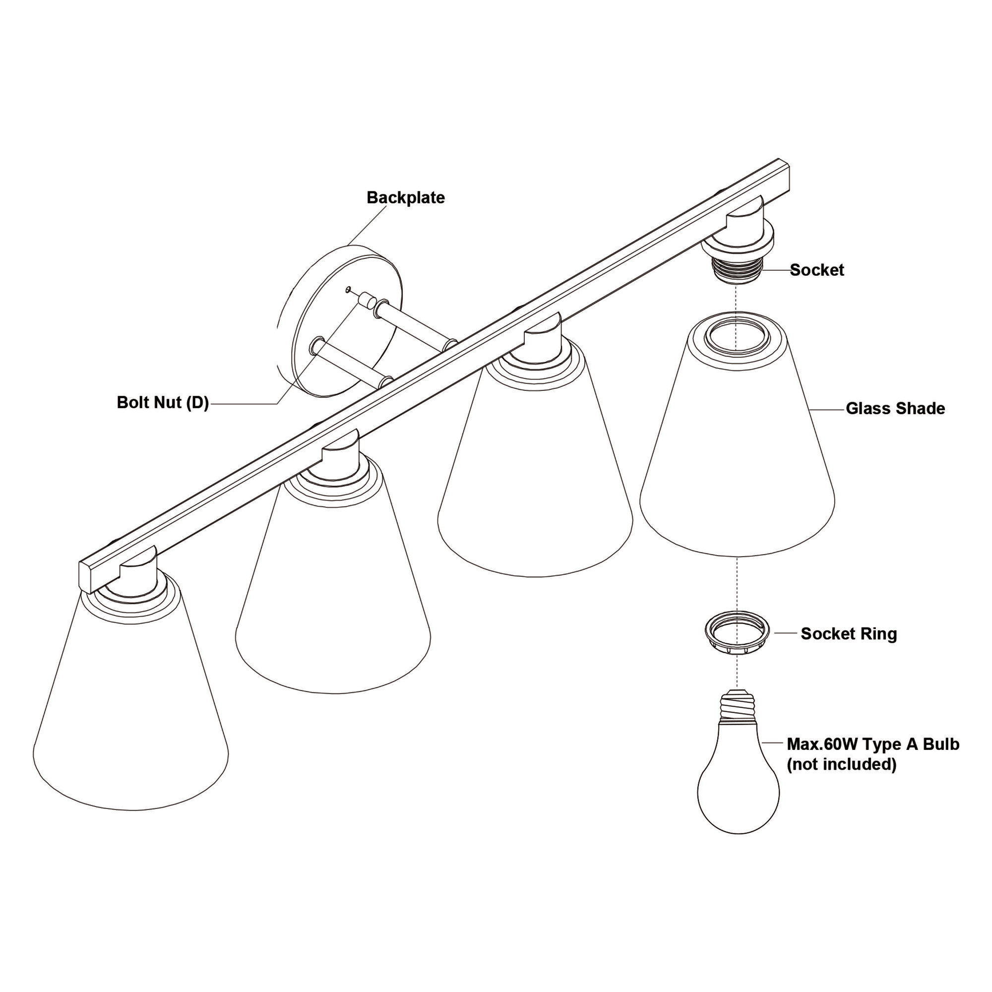 - Requires (4) 60 watt medium (E26) bulbs (not included)