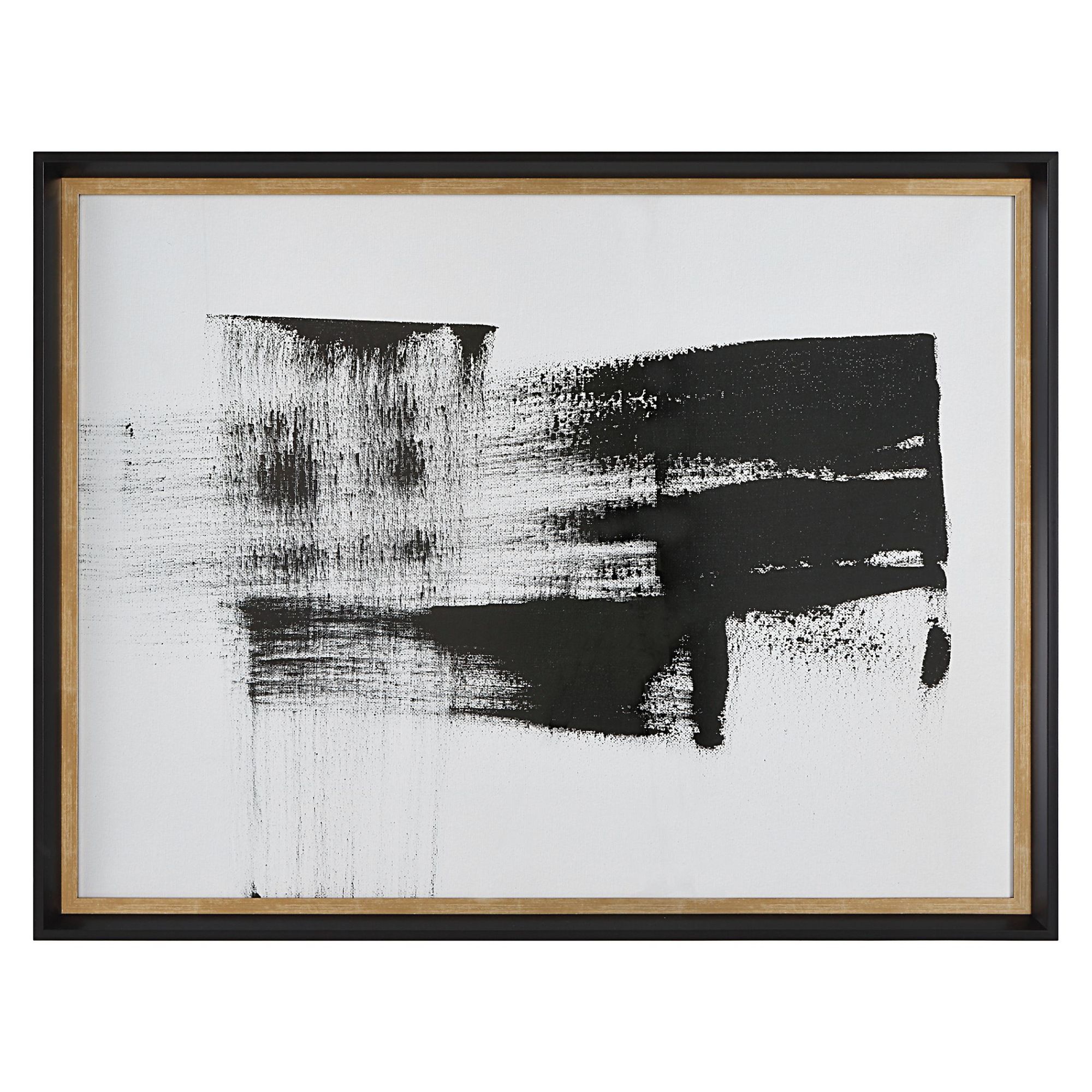 - Black frame with gold inner fillet, under glass, black and white abstract print