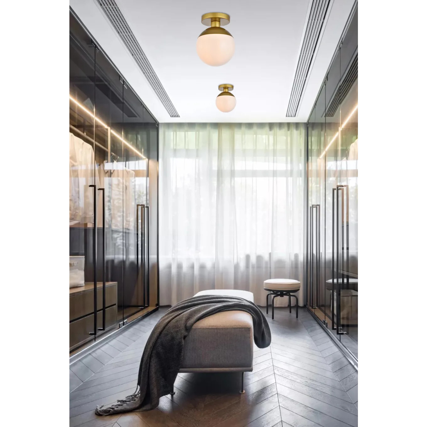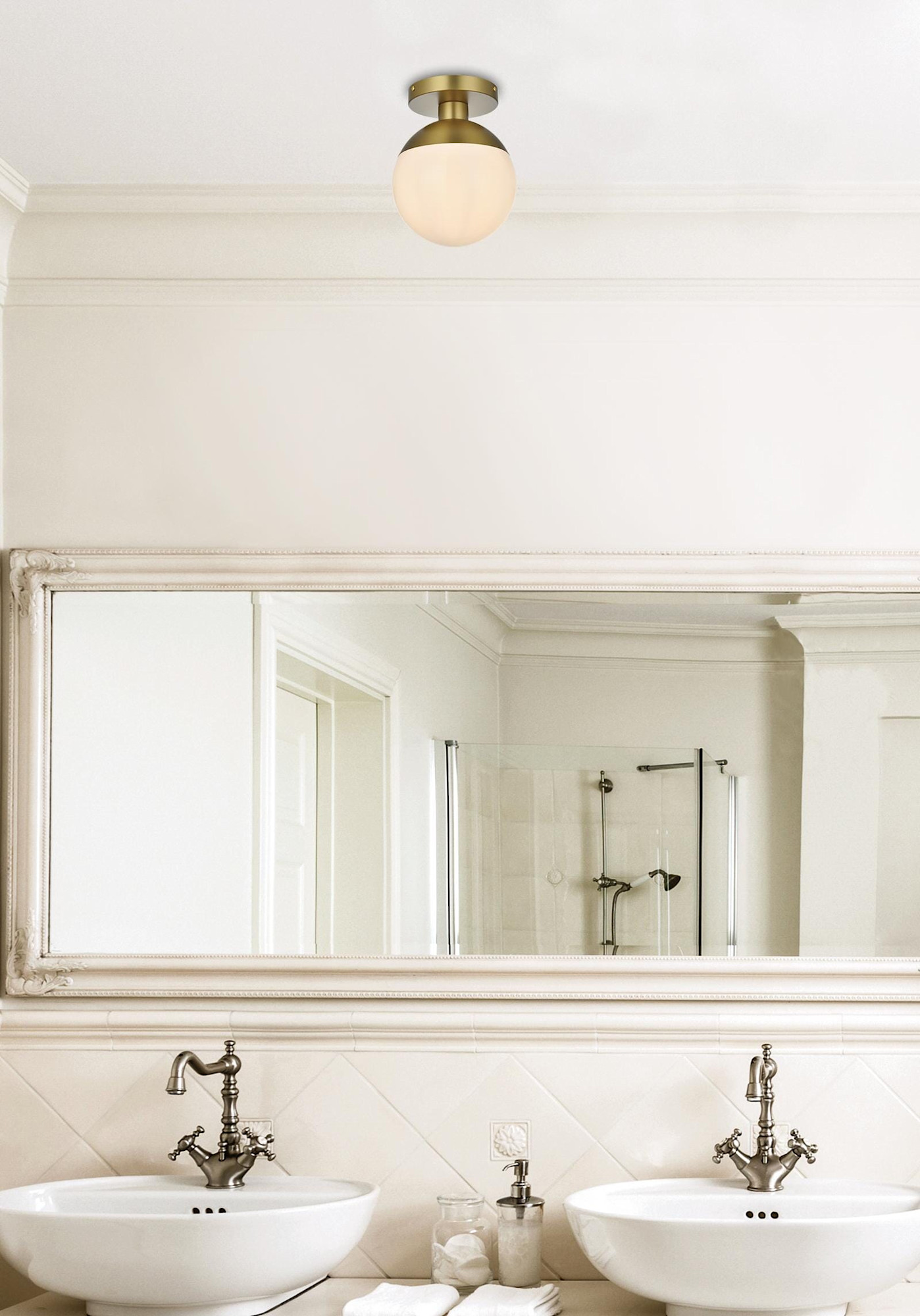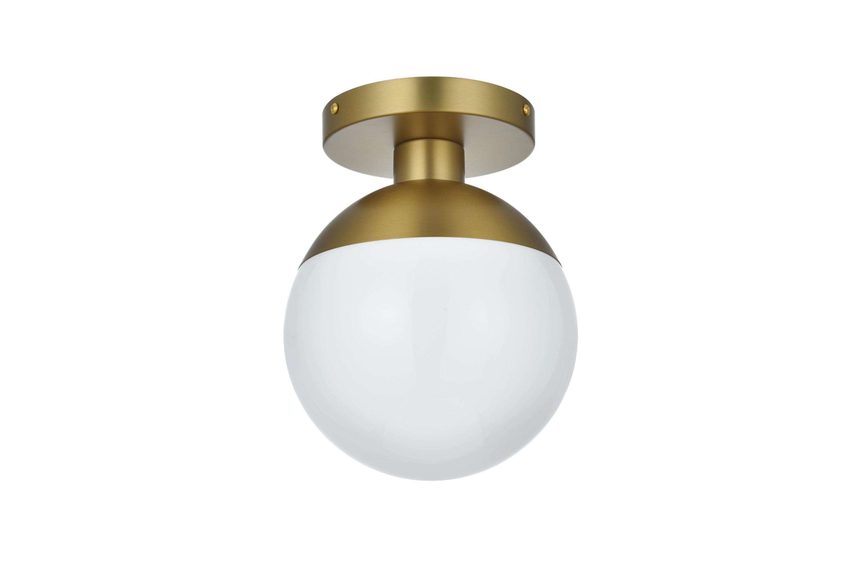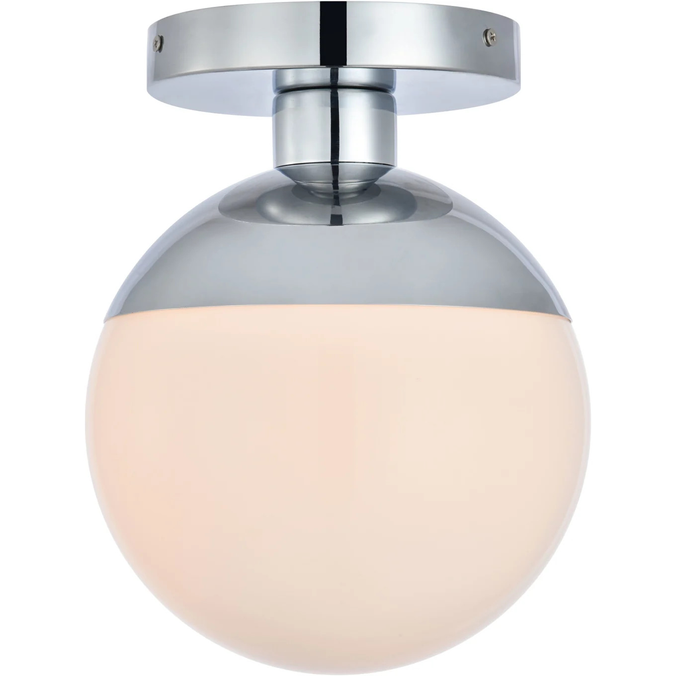 Item DescriptionRefined style with a practical design, Eclipse flush mount bring cosmopolitan sophistication anywhere, especially to an entryway, office, bathroom, bedroom, or kitchen. The smooth iron frame features a disk-shaped canopy and comes in a finish. A touch of color on top of the spherical glass shade brings character to this classic style. Living in the big city has never been this easy.