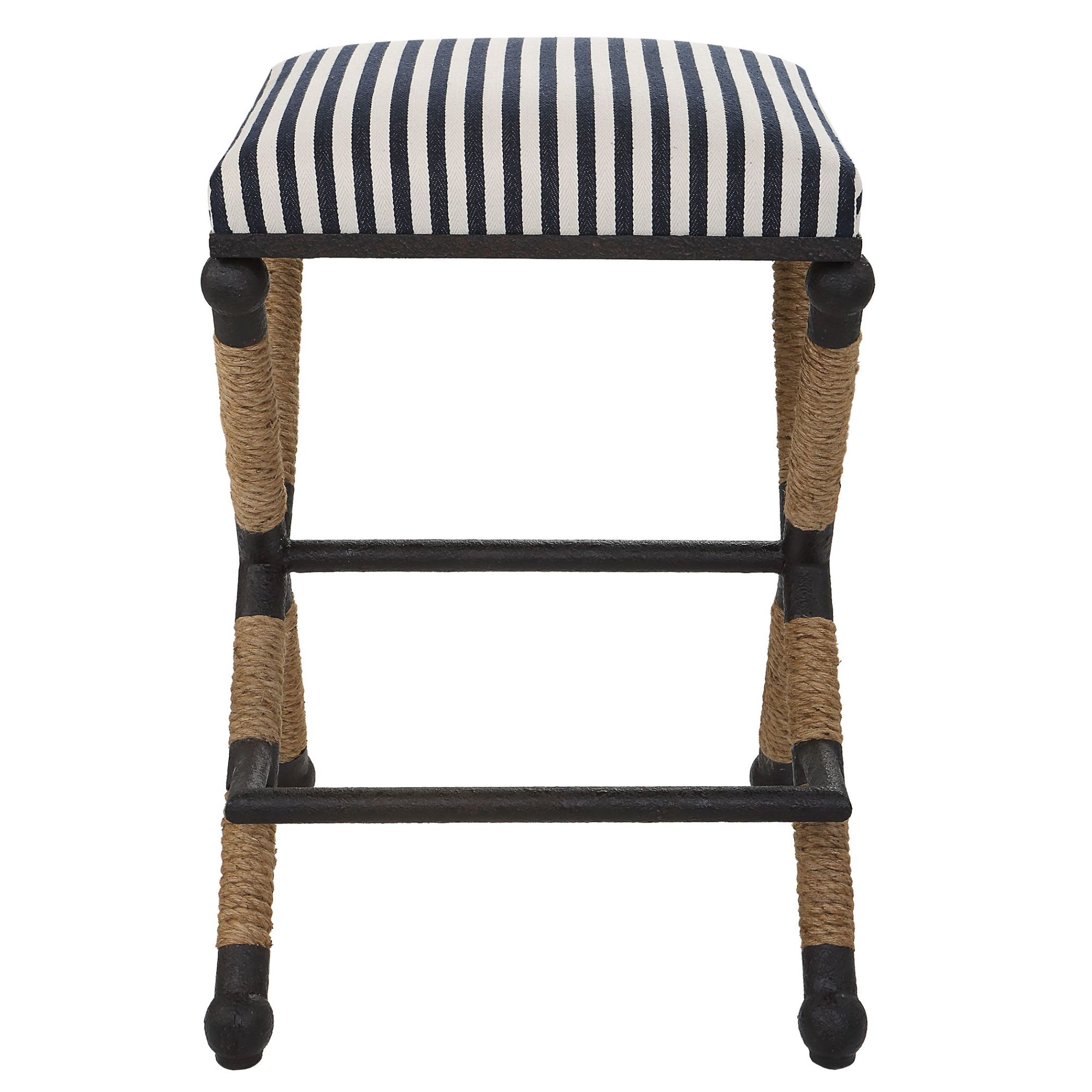 - Cushioned top is a sturdy, sailor-striped cotton in crisp navy and cream with performance treatment