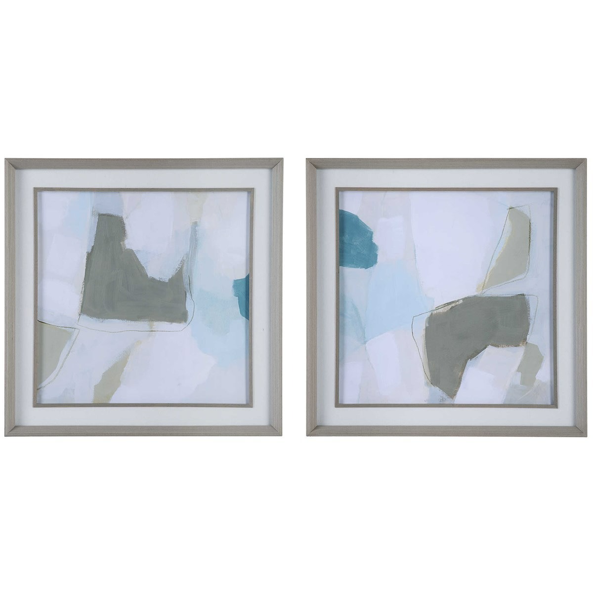 Item DescriptionThese modern works of art add a touch of style and serenity to your space. Each print is accented by a linen mat, placed under protective glass. Artwork by June Vess.