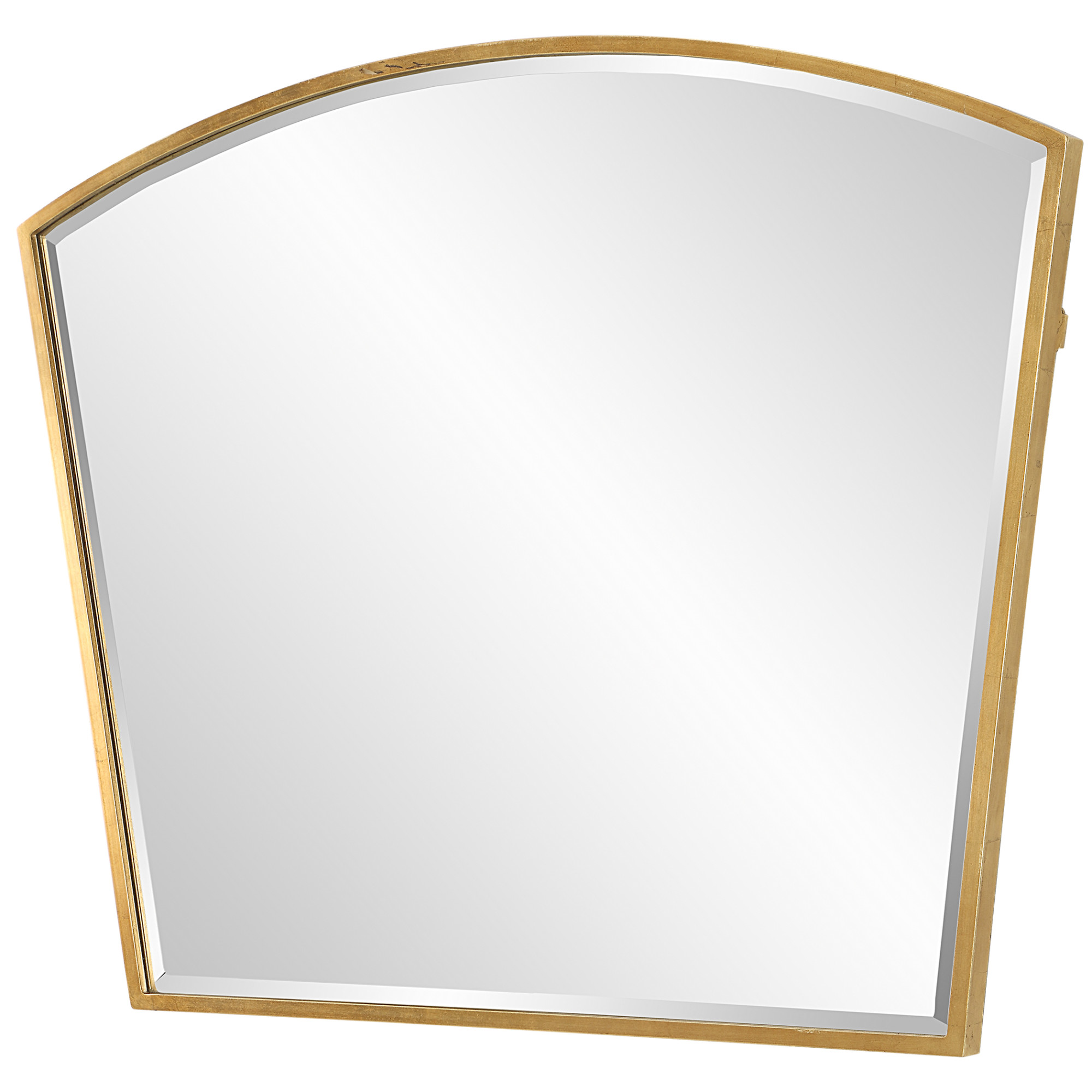 Item DescriptionThe Boundary mirror features a gracefully curved, petite iron arch finished in a lightly antiqued gold leaf, surrounding a 1 1/4" bevel mirror.