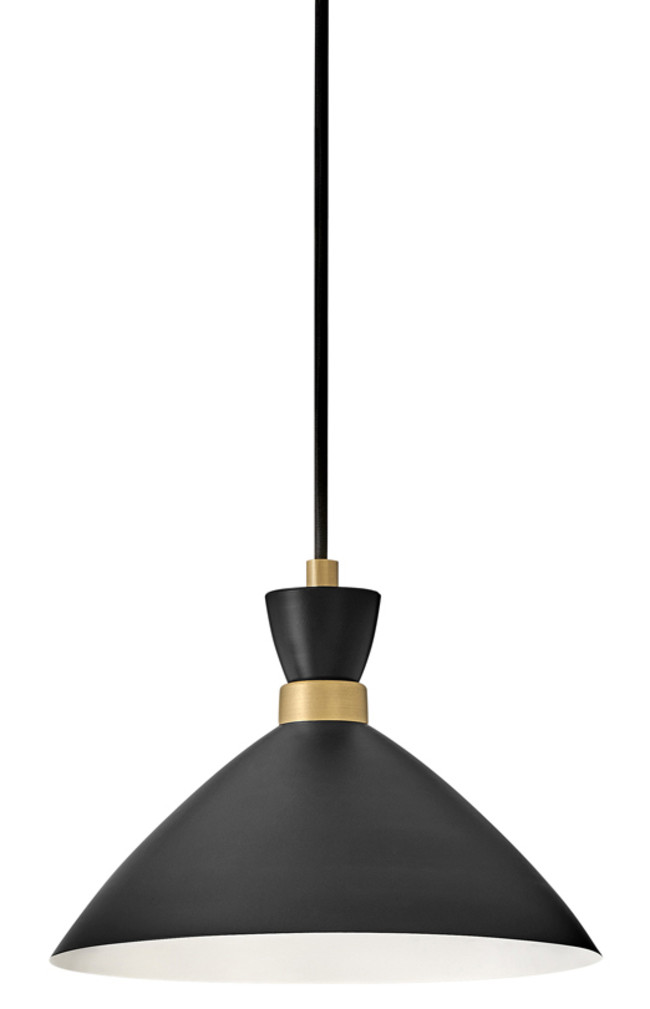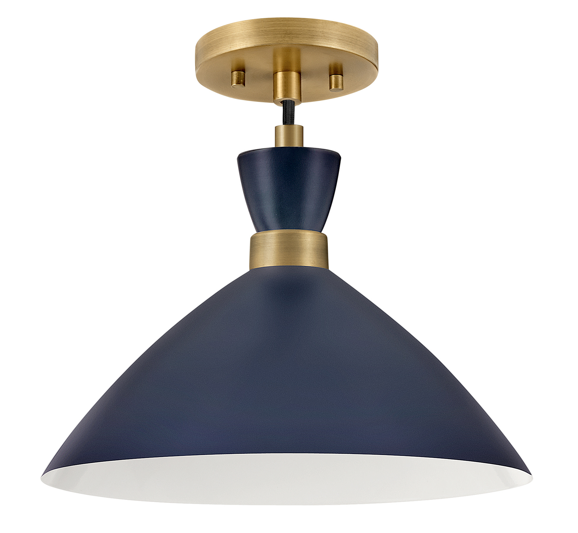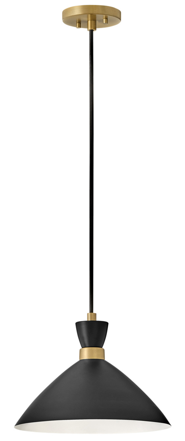 Item DescriptionThe Simon pendant makes our hearts beat a little faster thanks to its retro mix of mid-century modern style, cool conical metal shade and a rich Matte Navy finish that pops against the luxe Heritage Brass detailing. This 1-light, black cord-hung pendant design can be adjusted to a variety of heights to complement a myriad of spaces. Fun fact: this Simon pendant easily converts to a semi-flush mount for maximum flexibility.