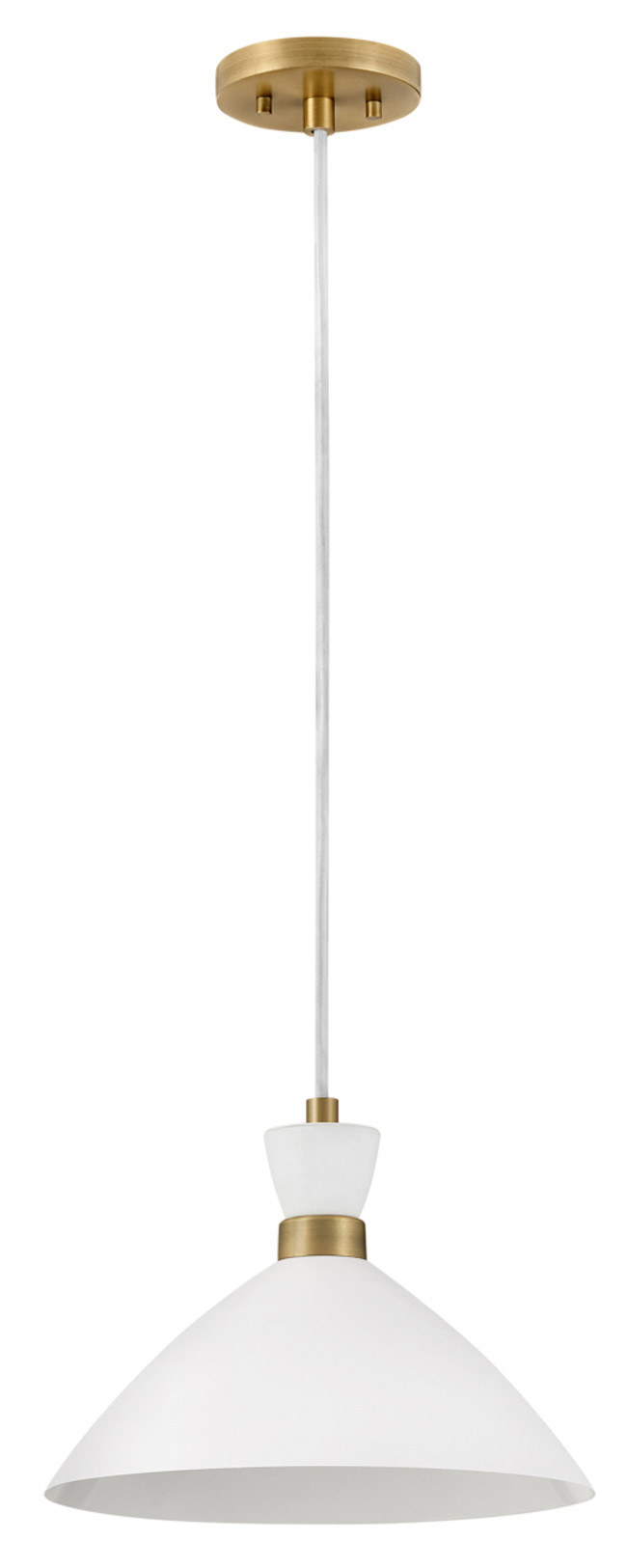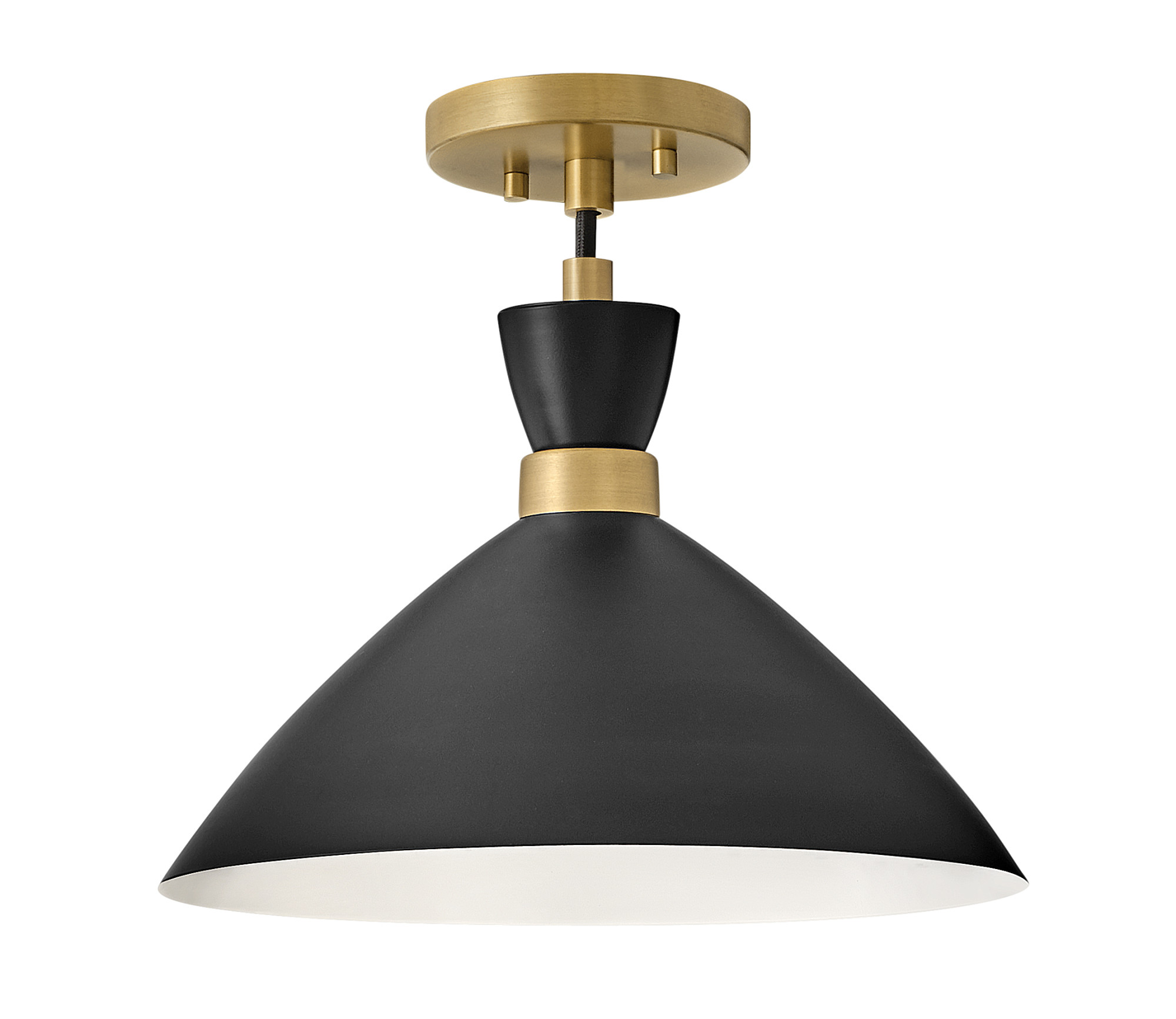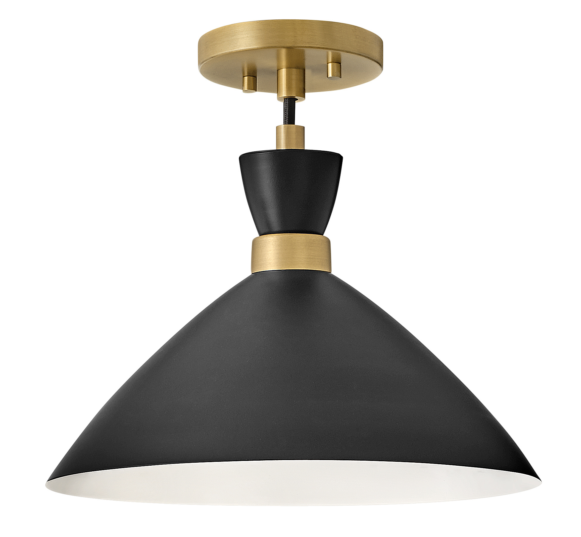 Item DescriptionThe Simon pendant makes our hearts beat a little faster thanks to its retro mix of mid-century modern style, cool conical metal shade and a rich Matte Navy finish that pops against the luxe Heritage Brass detailing. This 1-light, black cord-hung pendant design can be adjusted to a variety of heights to complement a myriad of spaces. Fun fact: this Simon pendant easily converts to a semi-flush mount for maximum flexibility.
