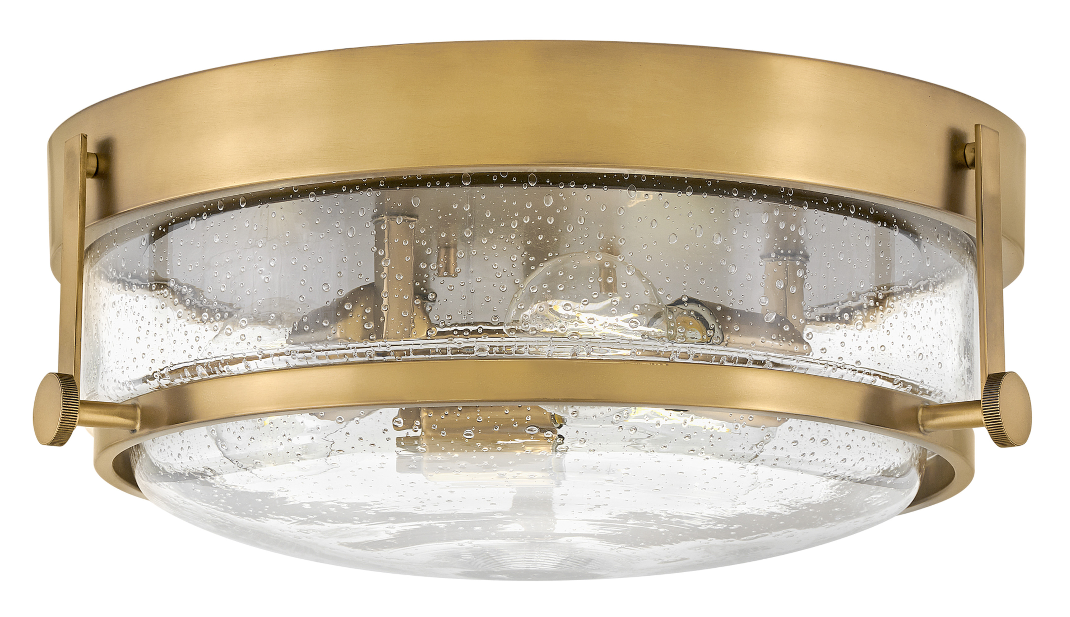 Item DescriptionHarper's sleek, retro design elevates the traditional flush mount with a unique clear seedy glass bound by a prominent metal ring and decorative knobs available in five classic finishes.