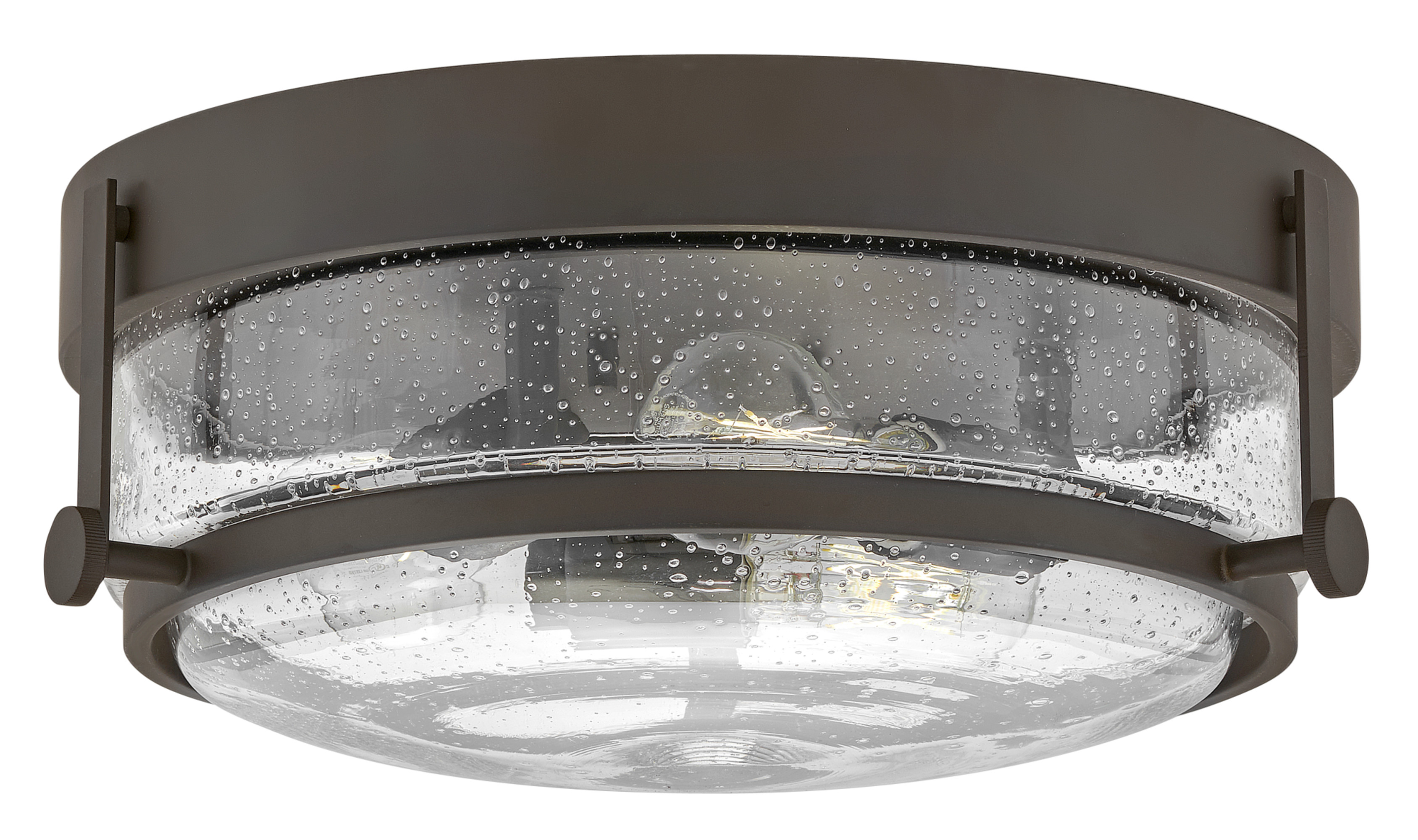 Item DescriptionHarper's sleek, retro design elevates the traditional flush mount with a unique clear seedy glass bound by a prominent metal ring and decorative knobs available in five classic finishes.