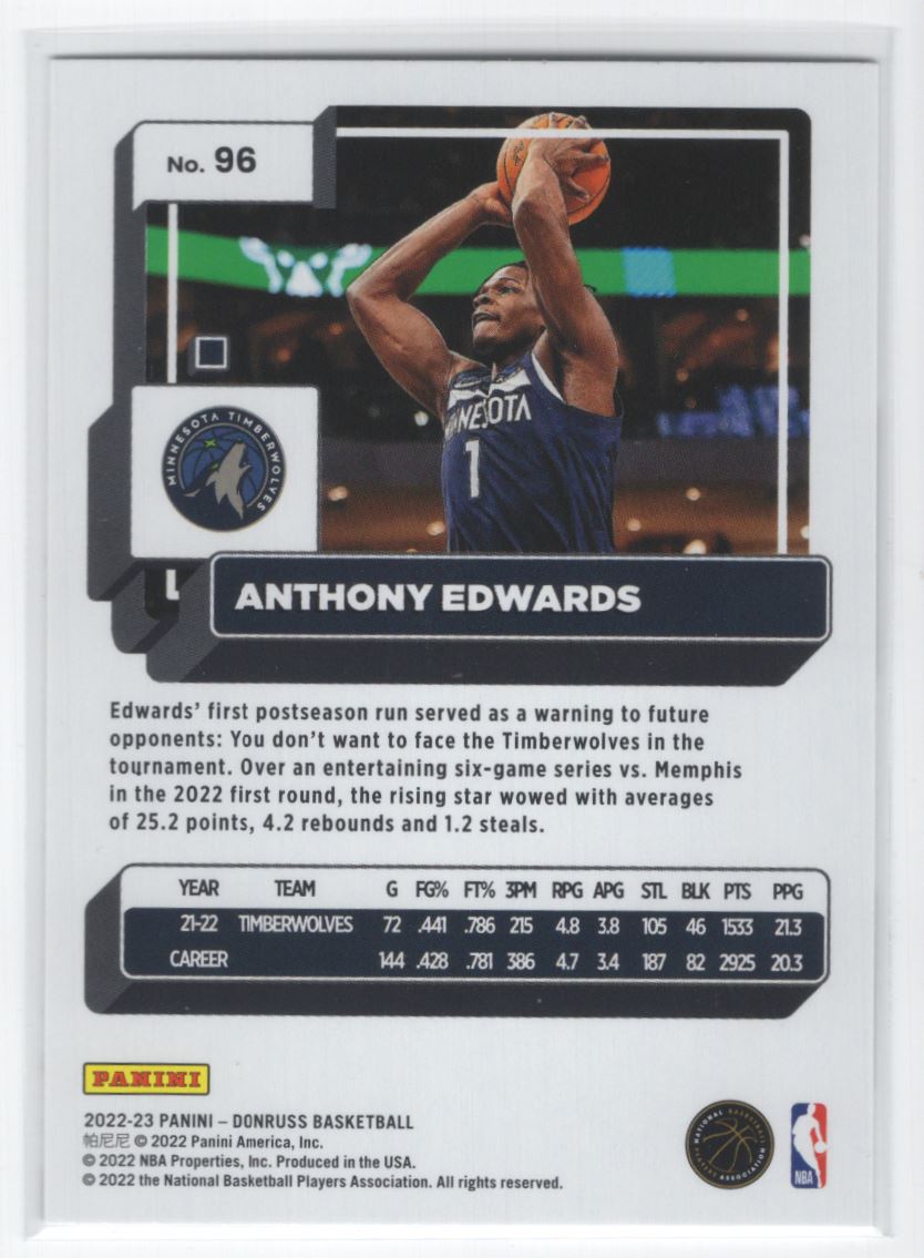 #96 2022-23 Donruss ] Anthony Edwards Minnesota Timberwolves