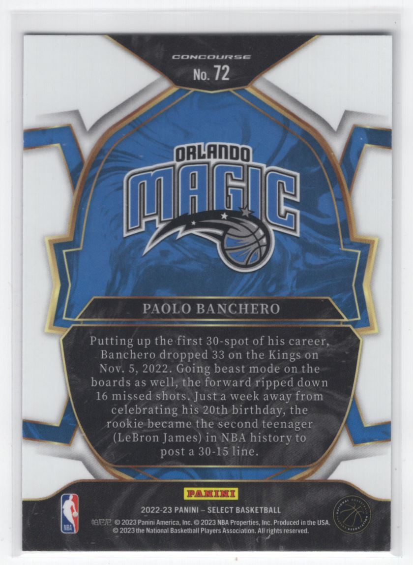 #72 2022-23 Select RETAIL BLUE < Paolo Banchero RC Orlando Magic