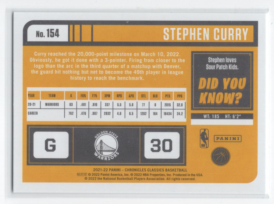 #154 2021-22 Chronicles Classics * Stephen Curry Golden State Warriors
