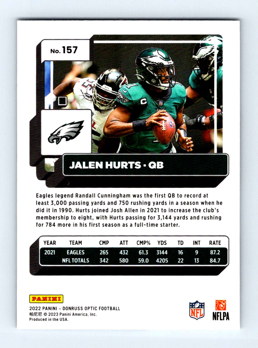 #157 2022 Donruss Optic Jalen Hurts Philadelphia Eagles
