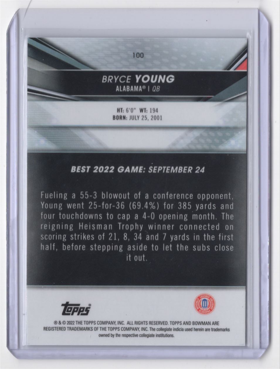 | 2022 Bowman's Best University Bryce Young Alabama Crimson Tide #100 | ||||||||||||||||