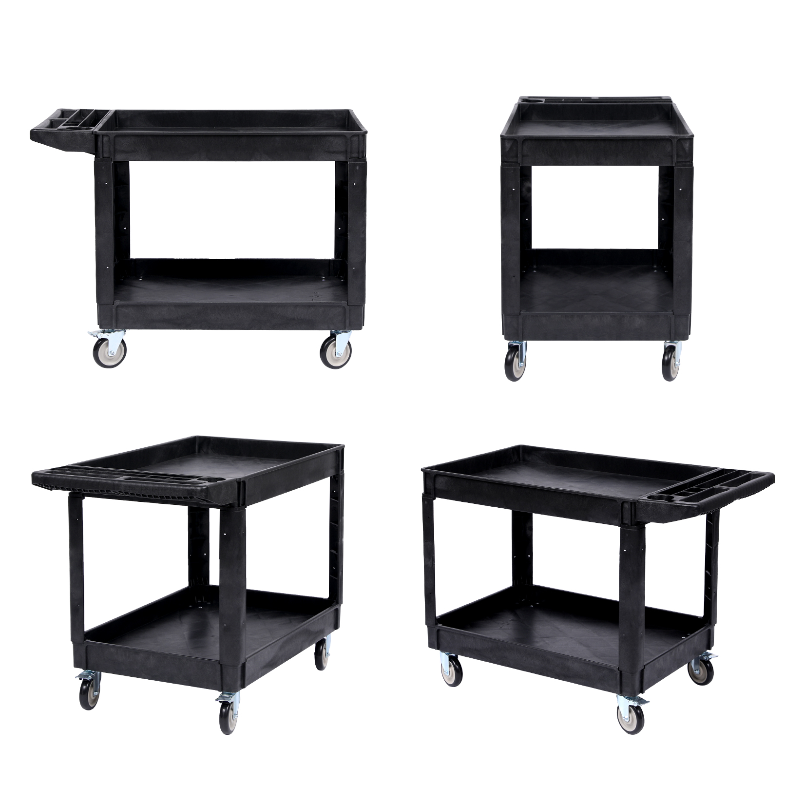 - ✅【Powerful Load Capacity】 Dimensions: 45.87" long x 25.2" wide x 31.69" high. This 2-tier rolling cart easily transports heavy items. Made of high-quality polypropylene material, it is rust-resistant, stain-resistant, scratch-resistant, and easy to clean. The high-density structure makes this utility cart sturdy, lightweight, and easy to maneuver, ensuring it can withstand 550 lbs of heavy loads and long-term use—making it a reliable heavy-duty cart with wheels.