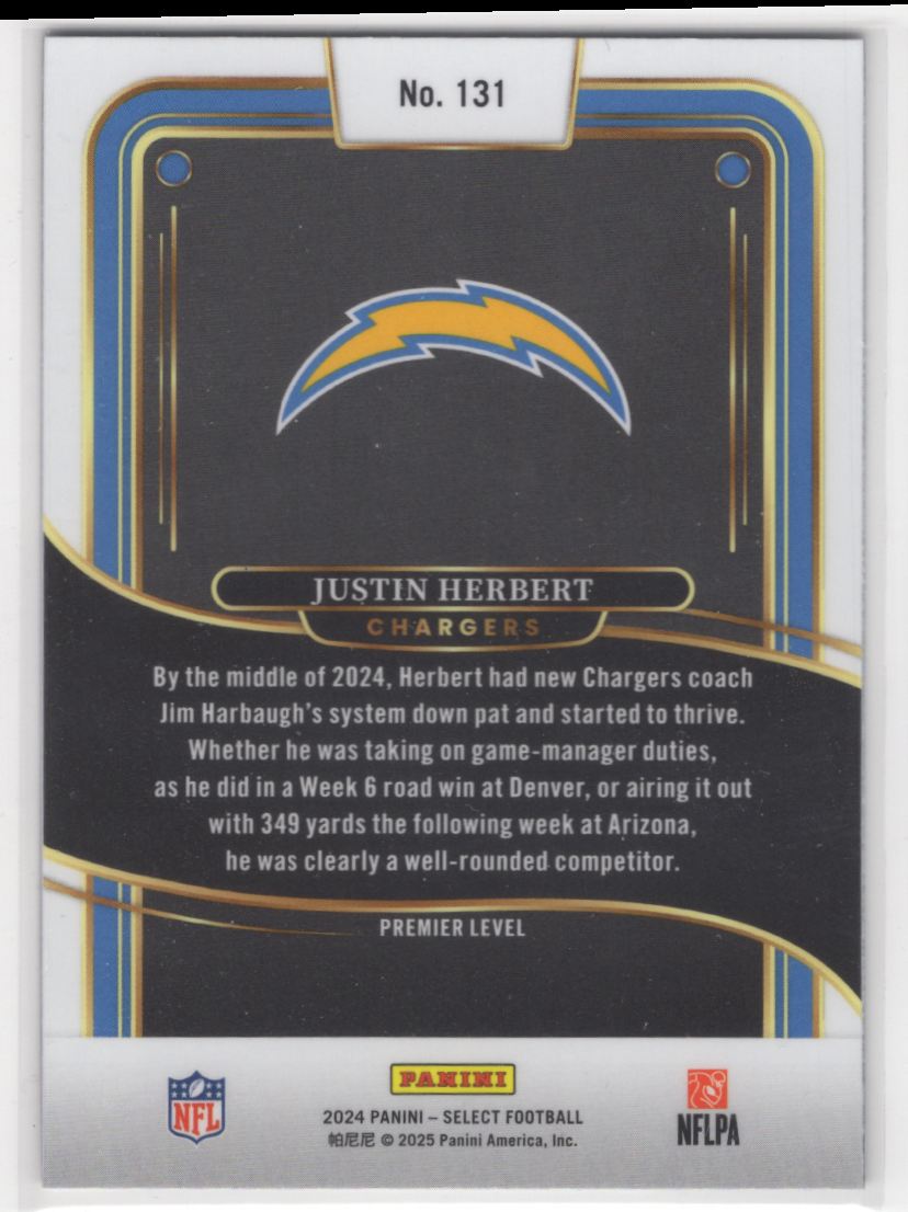 #131 Justin Herbert 2024 Panini Select Premier ~ Chargers