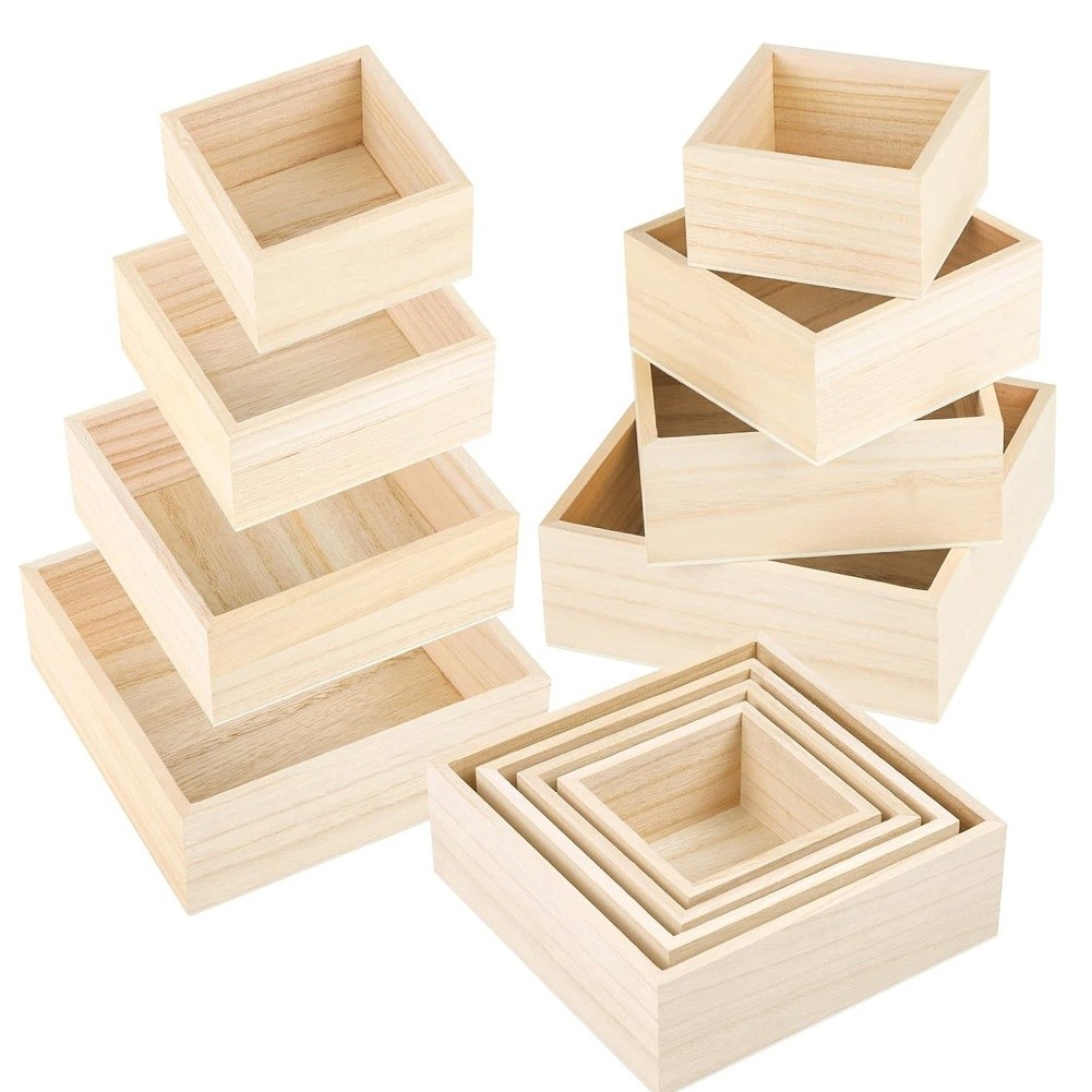 Ensemble plateau en bois boîte de rangement carrée présentoir de plantes de t