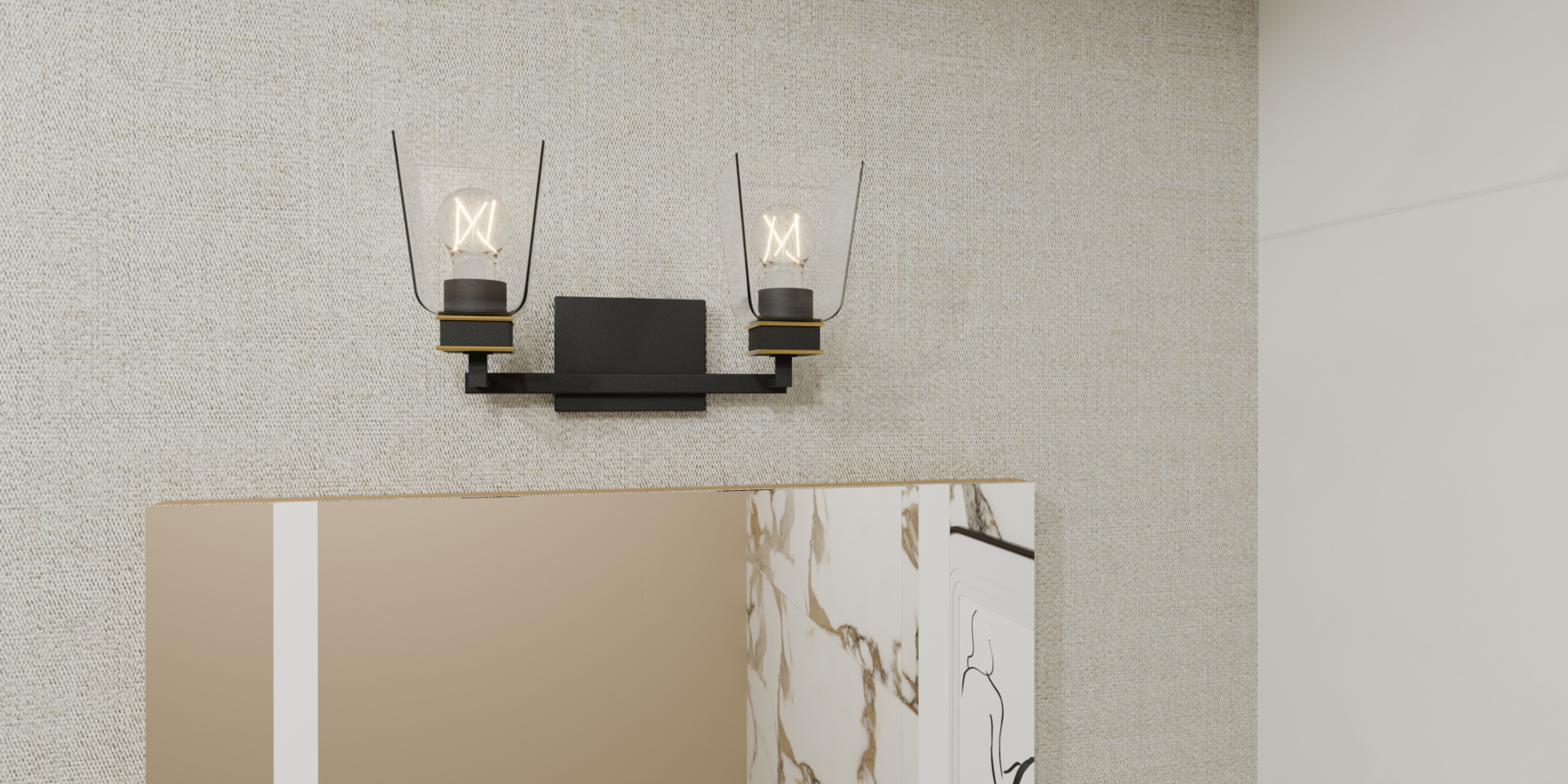 Item DescriptionAlmany bath lights make a modern statement over any vanity. The clear glass shades maximize radiance and showcase the bulbs of your choice, while aged brass accents add a touch of glam detail . This versatile vanity light can be mounted with the shades facing up or down, allowing you to easily customize to your desired bathroom setting.