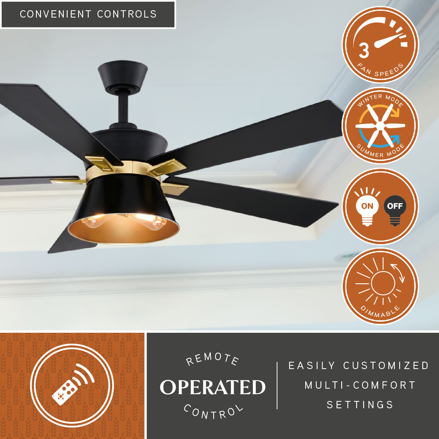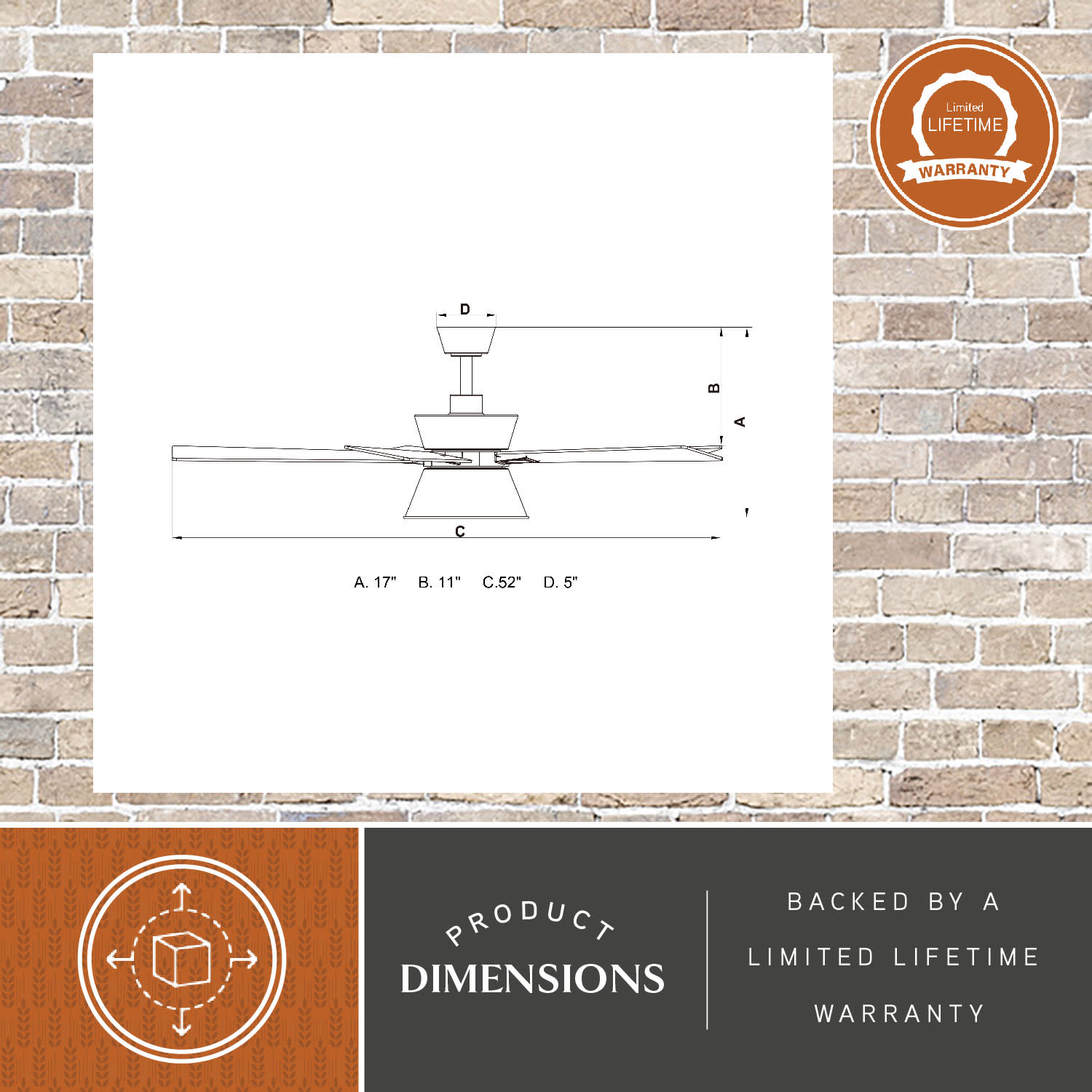 Item DescriptionMid-century modern meets contemporary elegance with the striking bowtie design of the Scottsdale 52-in. ceiling fan. Reversible blades offer versatile styling. Ideal for indoor spaces such as living rooms, bedrooms, or kitchens. Remote control, dimmable LED bulbs, and three-speeds for setting your ultimate comfort. Safety certified and backed by a lifetime limited warranty for lasting peace of mind.