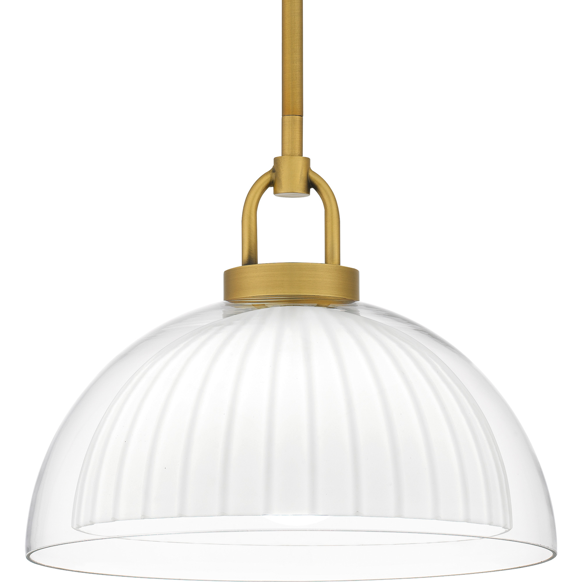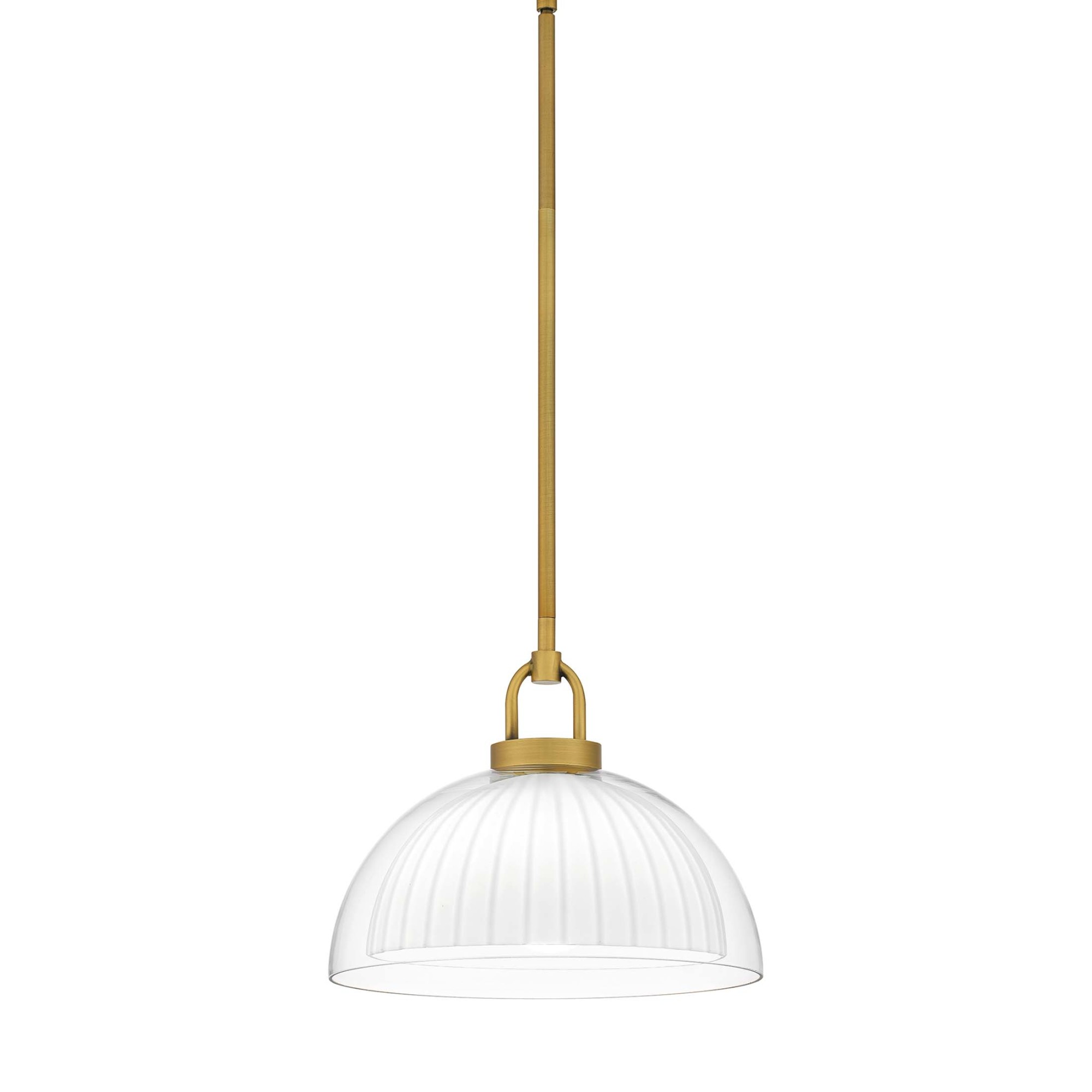 Item DescriptionJansen's modern design adds simple sophistication to any space. The opal etched ribbed inner shade sits within a clear glass outer shade for a unique illumination effect. The double layered shade is highlighted beautifully by a brushed gold frame, making Jansen pendant lights a stylish addition over any kitchen island, bar area, or small table.