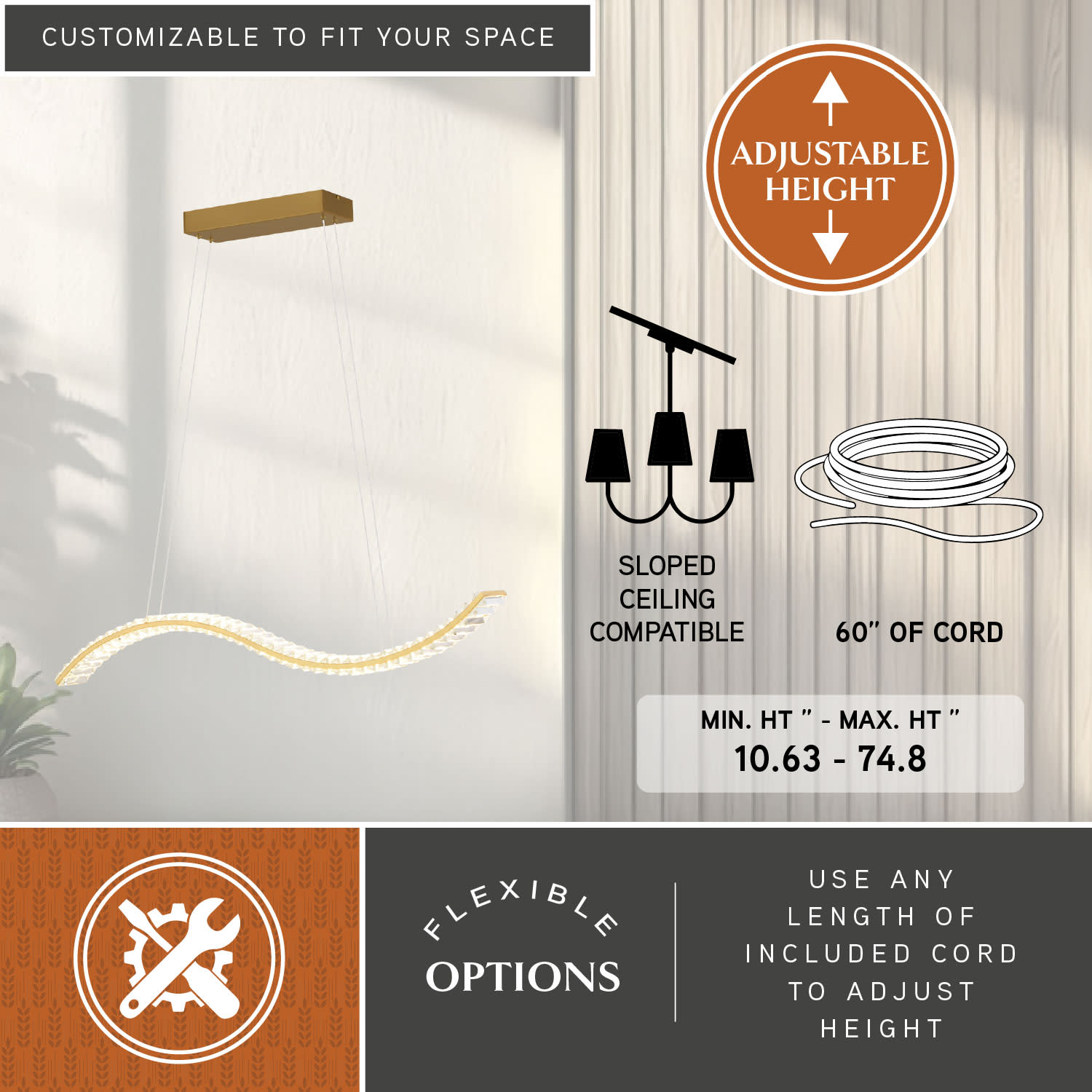 - Sloped ceiling compatible