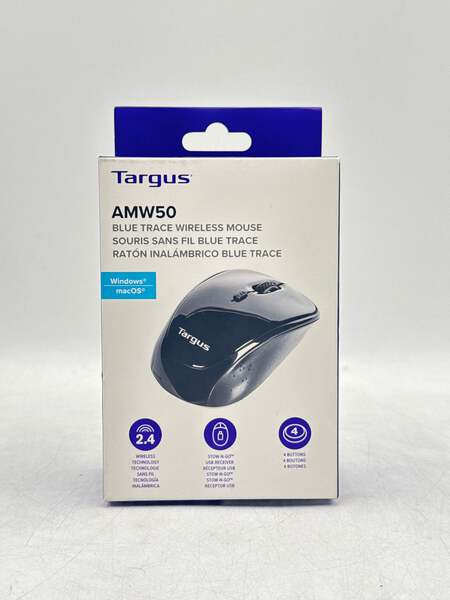The Targus Wireless Mouse comes in a vibrant blue color and is brand new, sealed in its original box. This stylish design enhances both the aesthetics of your workspace and your productivity.