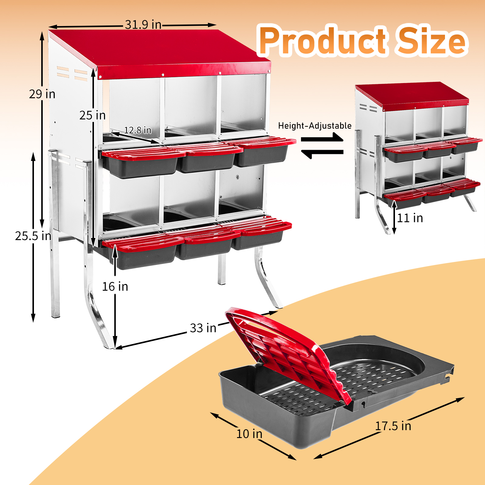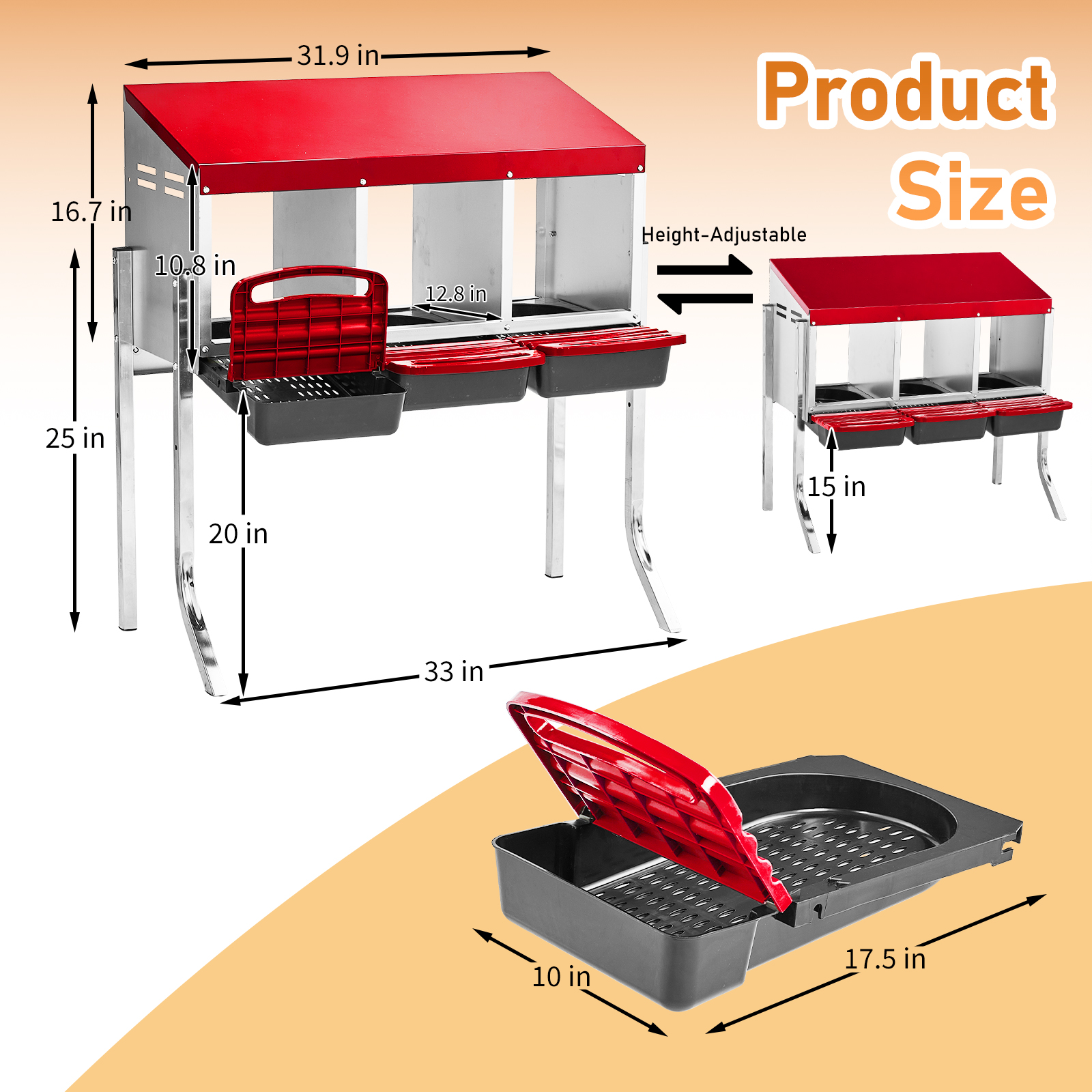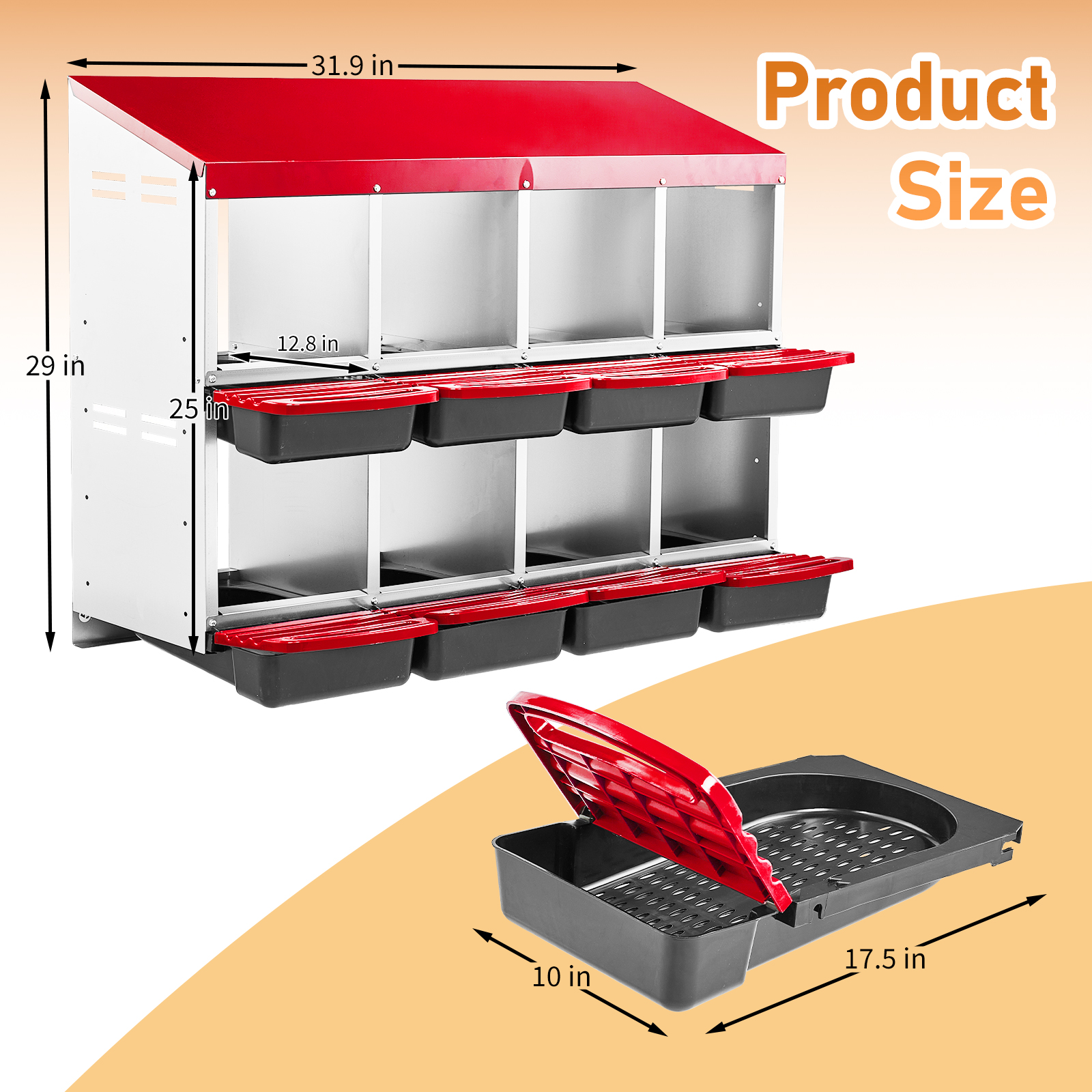 Chicken Nesting Boxes, 3/6/8Hole Metal Egg Laying Box for Outdoor Chicken Coop