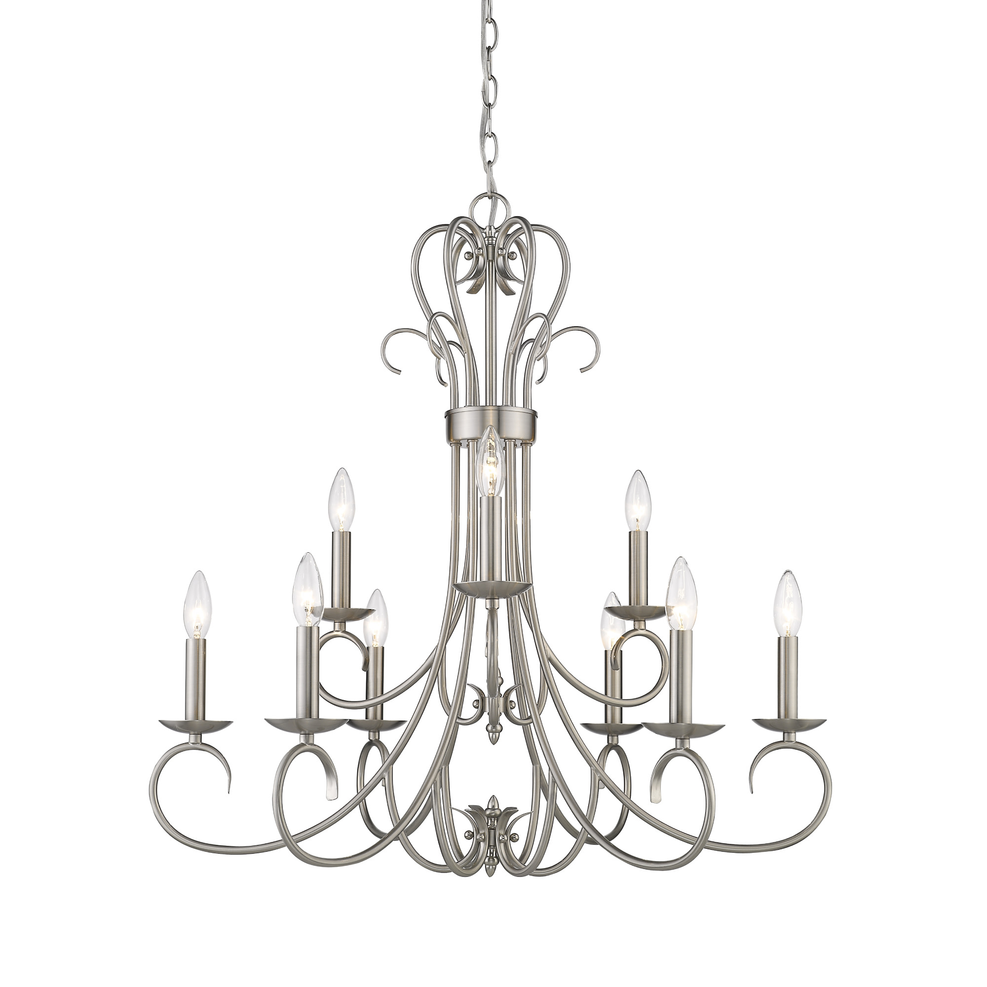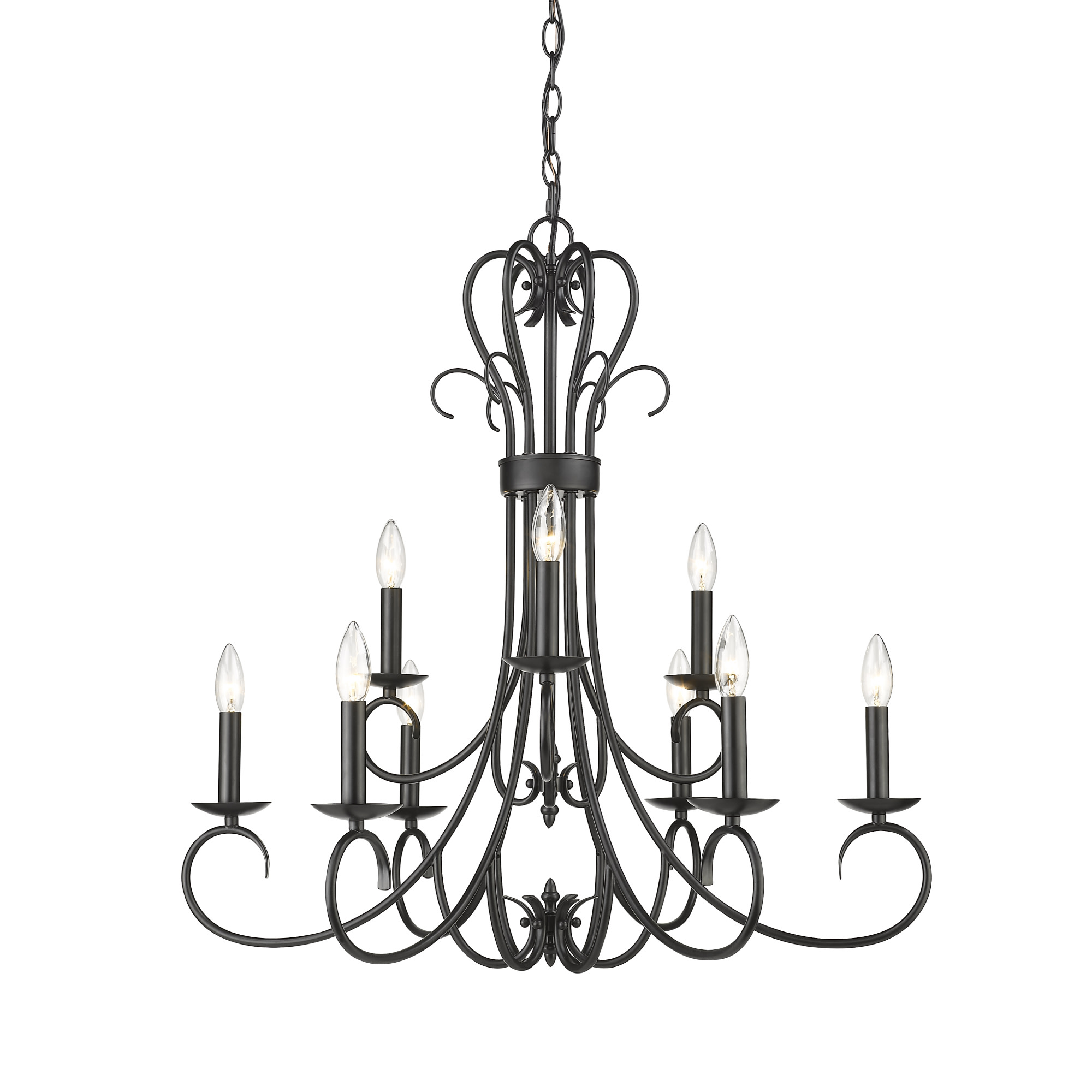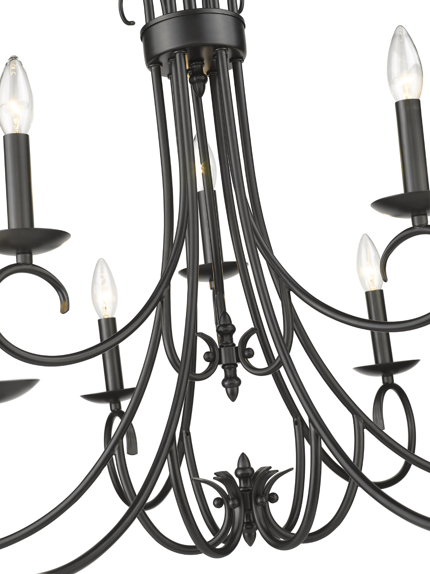 - (9) 60 watt maximum candelabra (E12) bulbs required