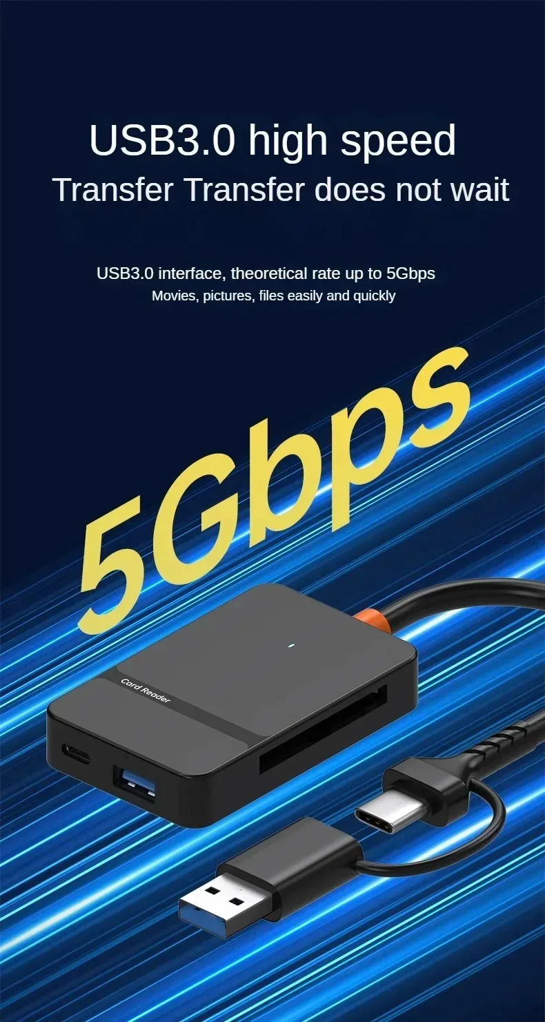 Transfer your files faster and easier with this 8-in-1 USB 3.0 & USB-C Memory Card Reader. Designed for photographers, videographers, and everyday users, it supports multiple card formats and works with both USB-A and USB-C devices.