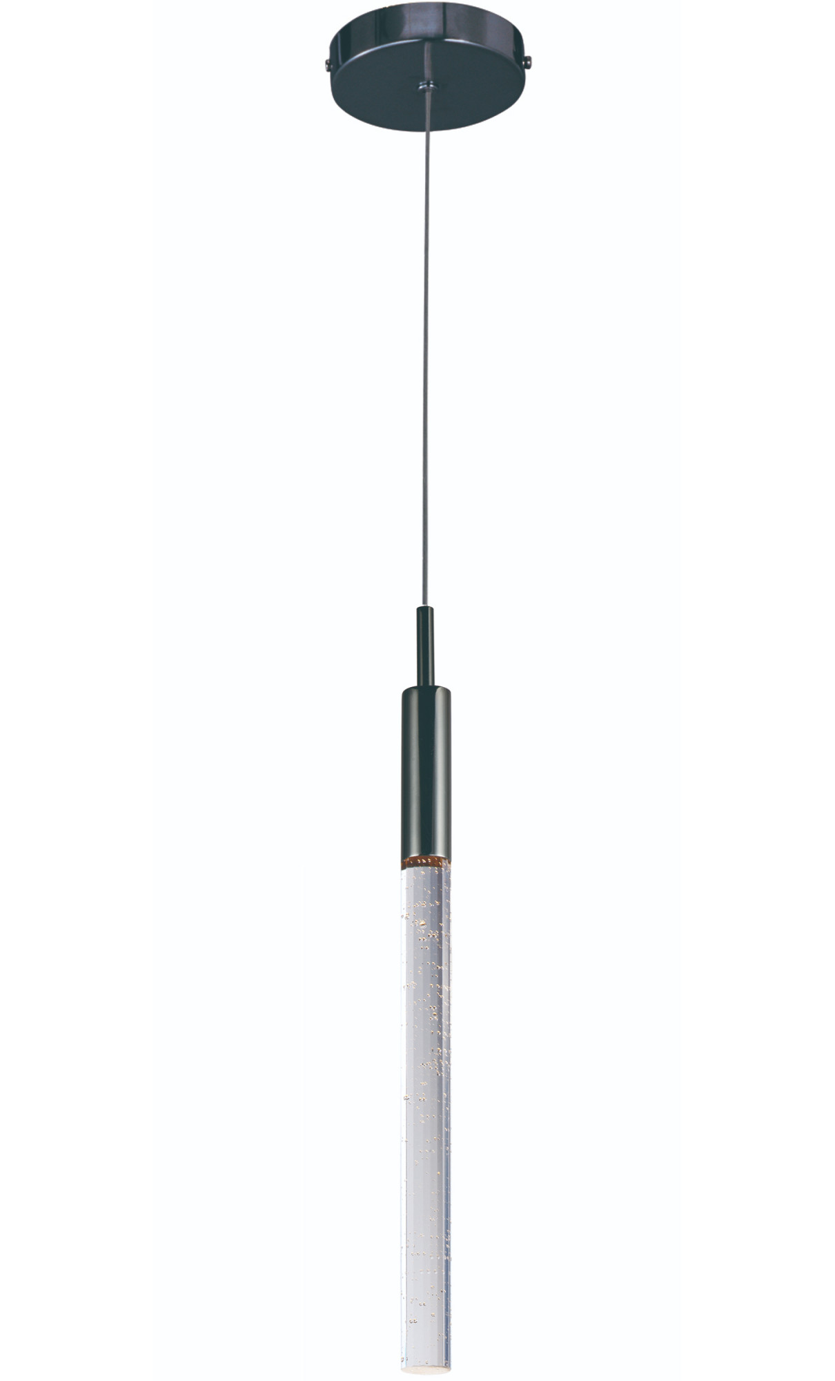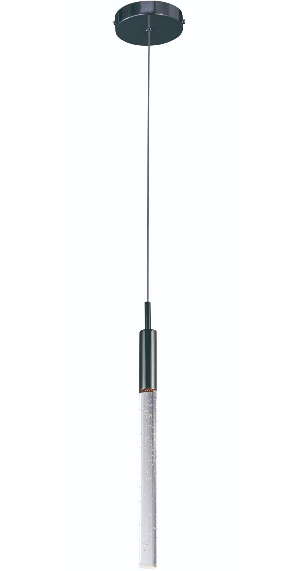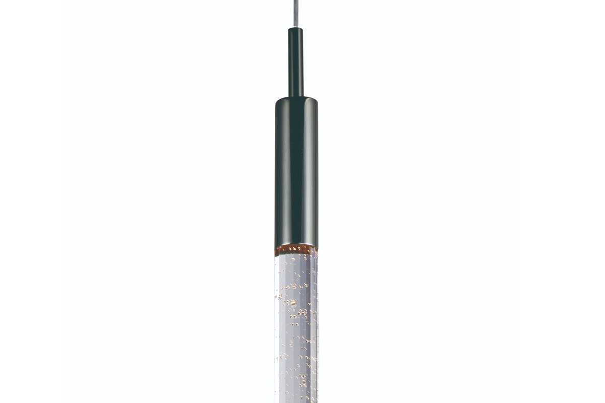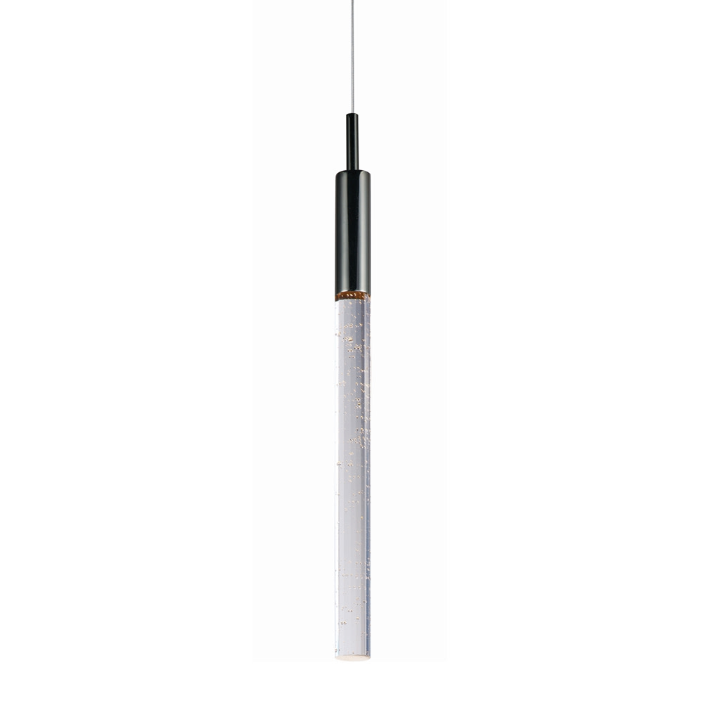 Item DescriptionSlender beveled cut rods of bubble glass, illuminated by high power LED modules, suspend in an array of fashionable configurations. Available in Black Chrome with Clear bubble glass and Anodized Bronze with Champagne bubble glass.