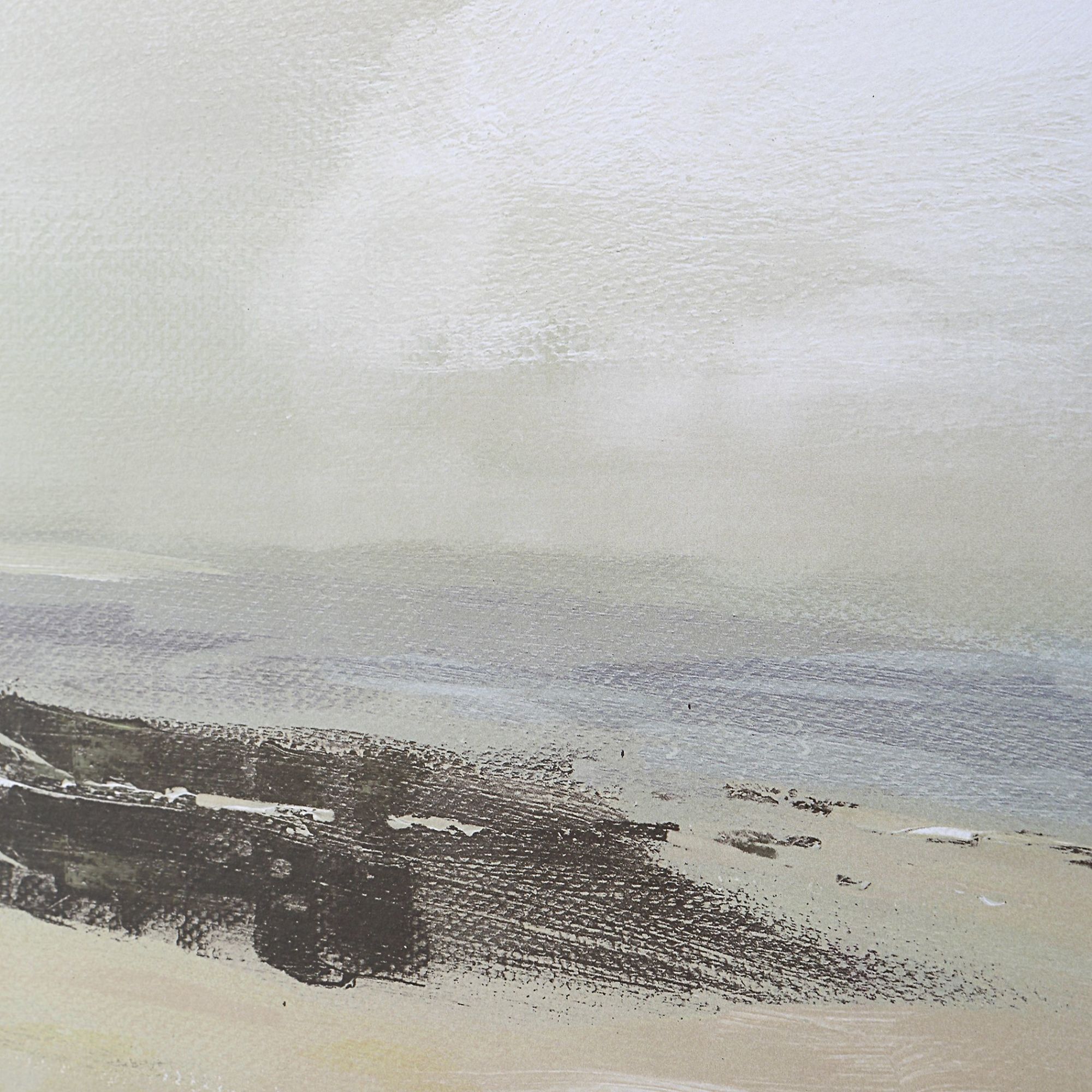 - Black wood frame with wood grain texture, ceruse, linen inner liner, soft landscape with protective spray