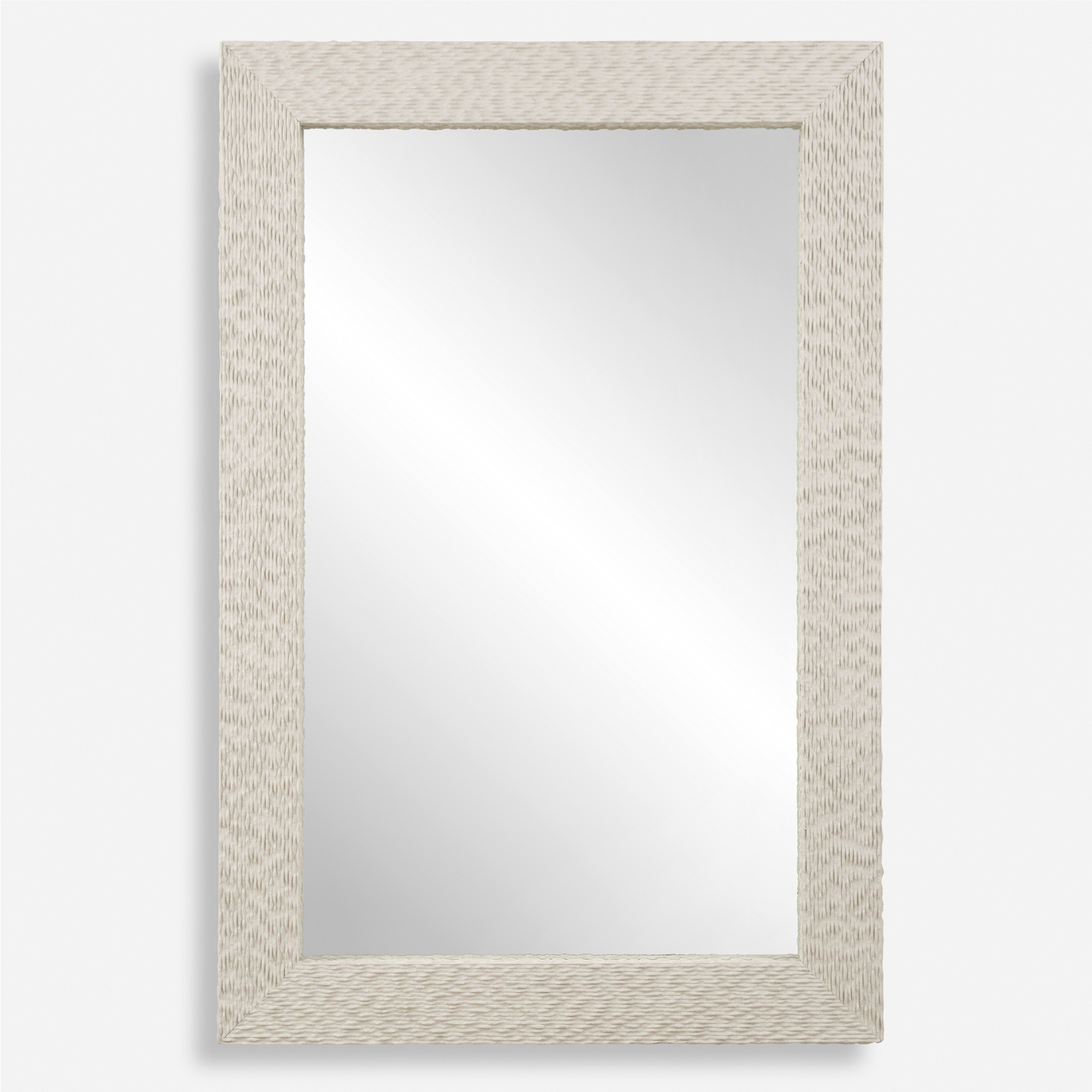 Item DescriptionThe everett mirror features a man-made stone veneer, characterized by a heavily textured surface. Mirror has a generous 1 1/4" bevel. May be hung horizontal or vertical.