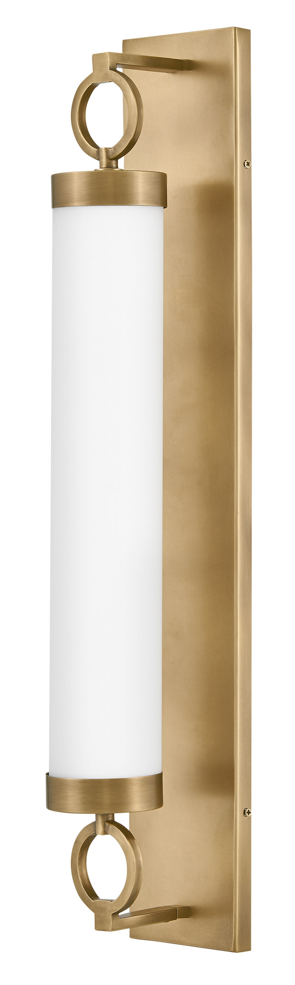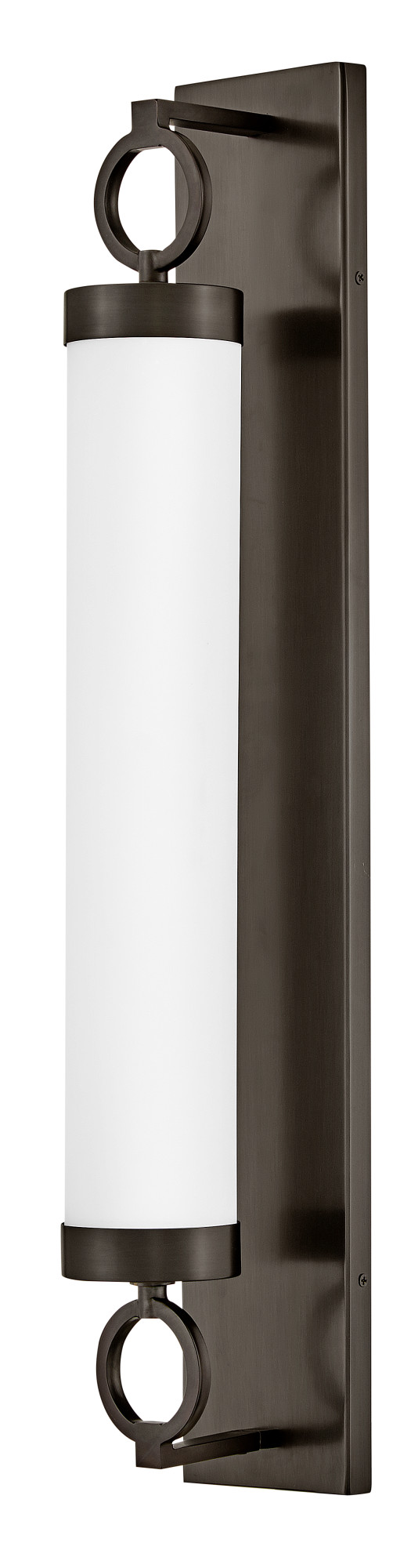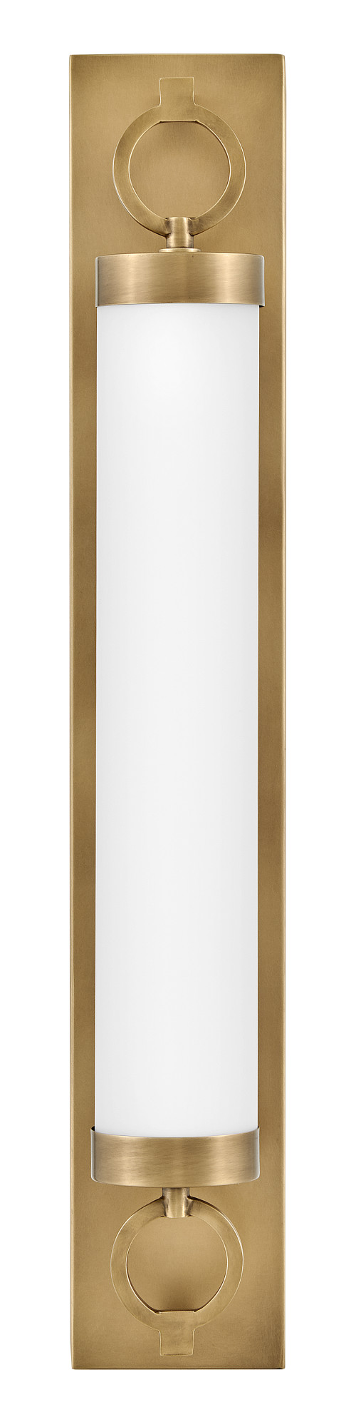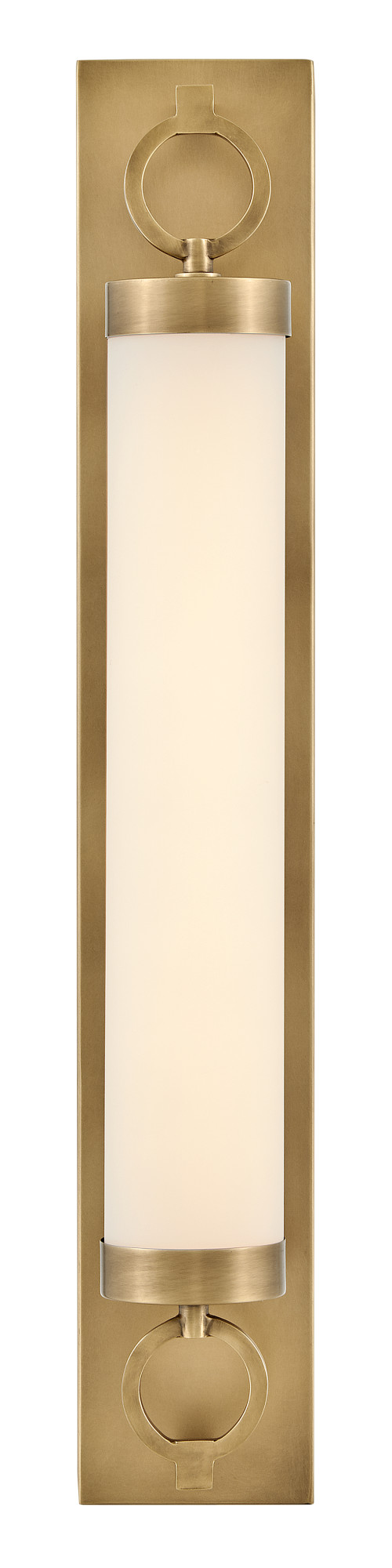For a fixture that is an industrial piece of art, look to Baylor. The sturdy back plate and decorative rings add a nice balance to the etched opal glass to finish off the strong, substantial look. Ideal for providing plenty of functional light, Baylor mounts cleanly to the wall vertically or horizontally to bring style to primary bath, powder rooms, and more. Baylor is part of the Lisa McDennon Collection.