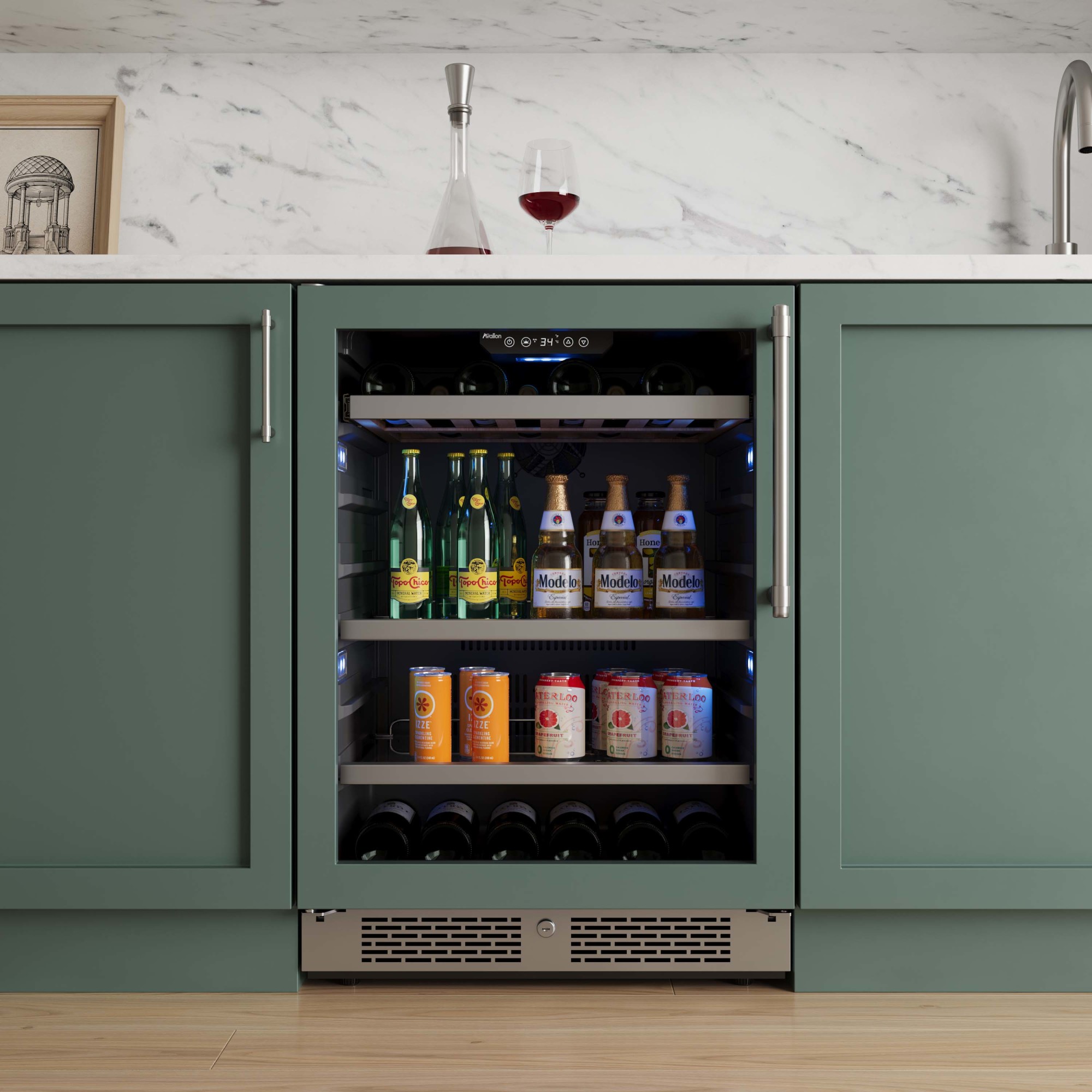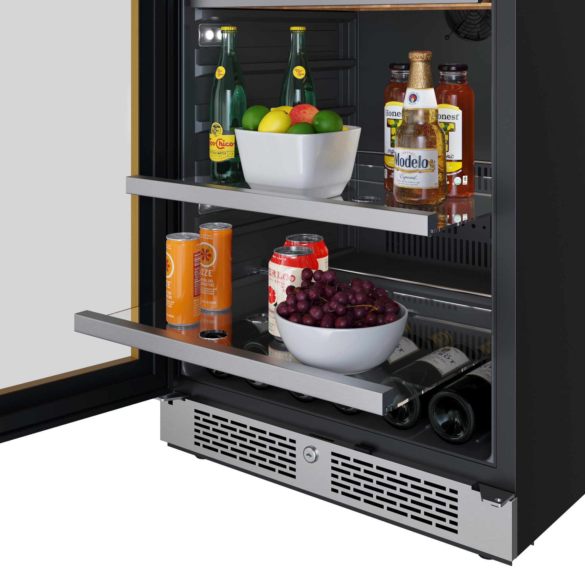 - Capable of holding 14 bottles and 82 cans