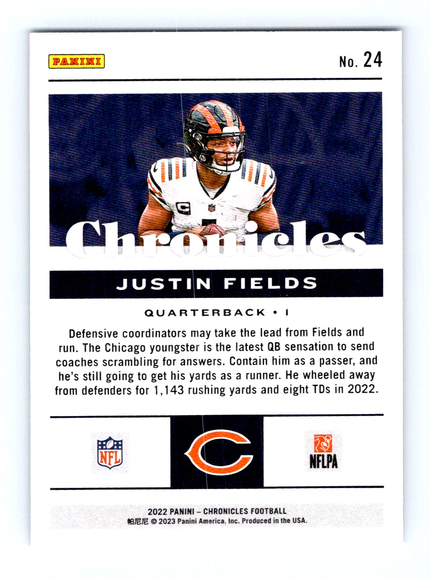 #24 2022 Chronicles Teal : Justin Fields Chicago Bears