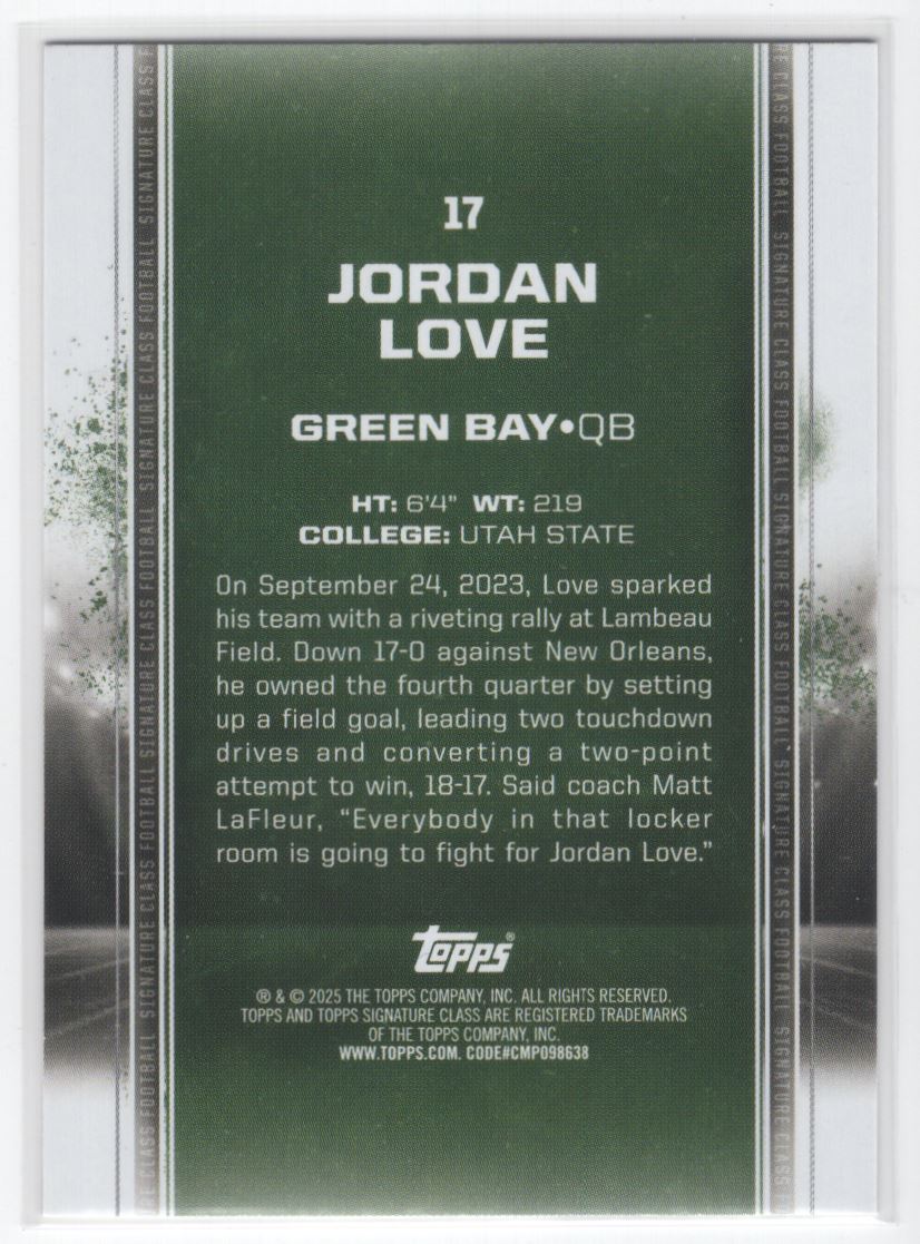 #17 2024 Topps Signature Class Bronze ; Jordan Love Packers