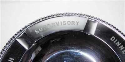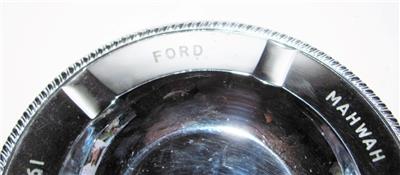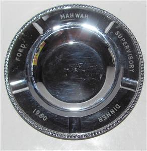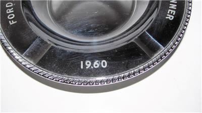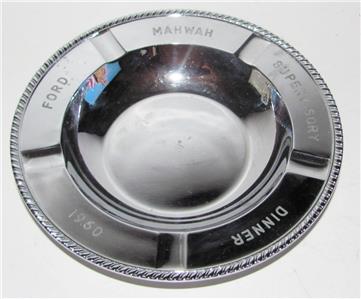 Offered here is a souvenir ashtray from a Ford employee special event dinner. The chrome plated metal ashtray is heavy and solid. It measures 6 ¾”. On the back it says Dutch Boy Paints and National Lead Company. The chrome plating does have some overall light wear.