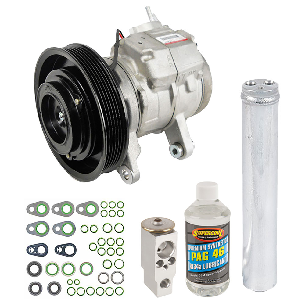 This 5 piece Premium Installers AC Kit includes an OEM new AC compressor, accumulator/drier, expansion device, a bottle of AC compressor oil and a pack of the correct o-rings for your system to prevent leaks. This kit is designed to include all of the right parts to make the repair process easier and save you money.