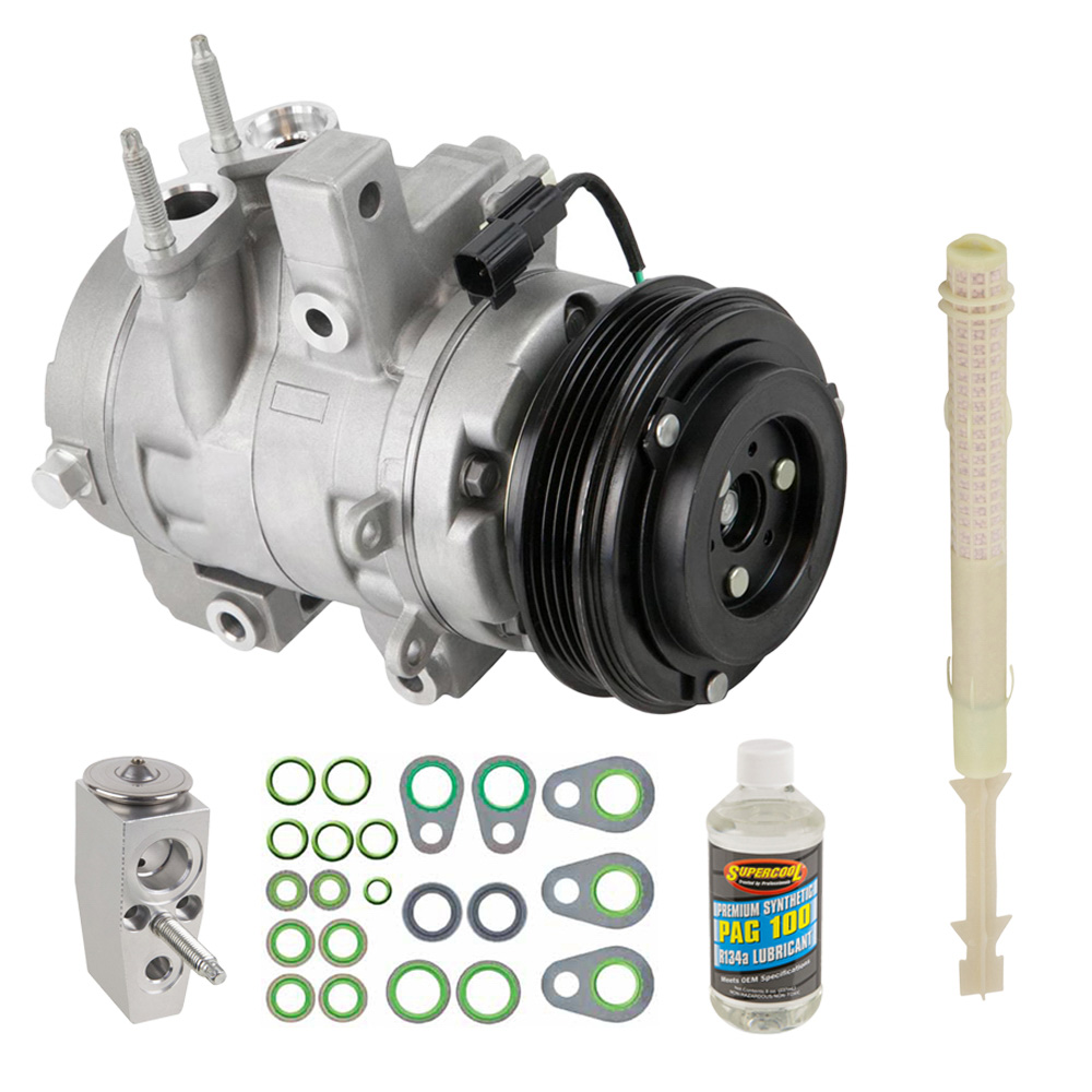 This 5 piece Installers AC Kit includes a brand new AC compressor, accumulator/drier, expansion device, a bottle of AC compressor oil and a pack of the correct o-rings for your system to prevent leaks. This kit is designed to include all of the right parts to make the repair process easier and save you money.
