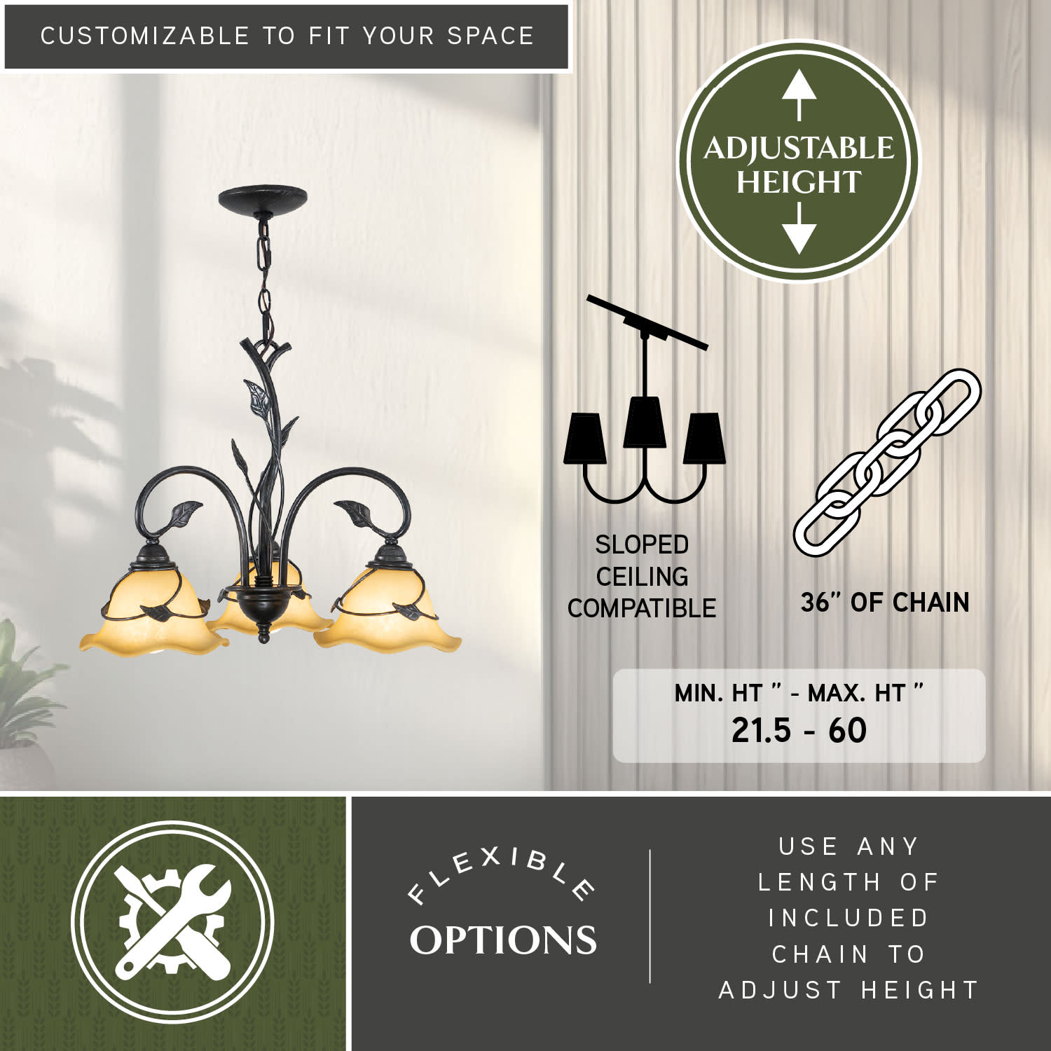 - Chandelier Dimensions: 17.5" x 22" (H x Dia.)
