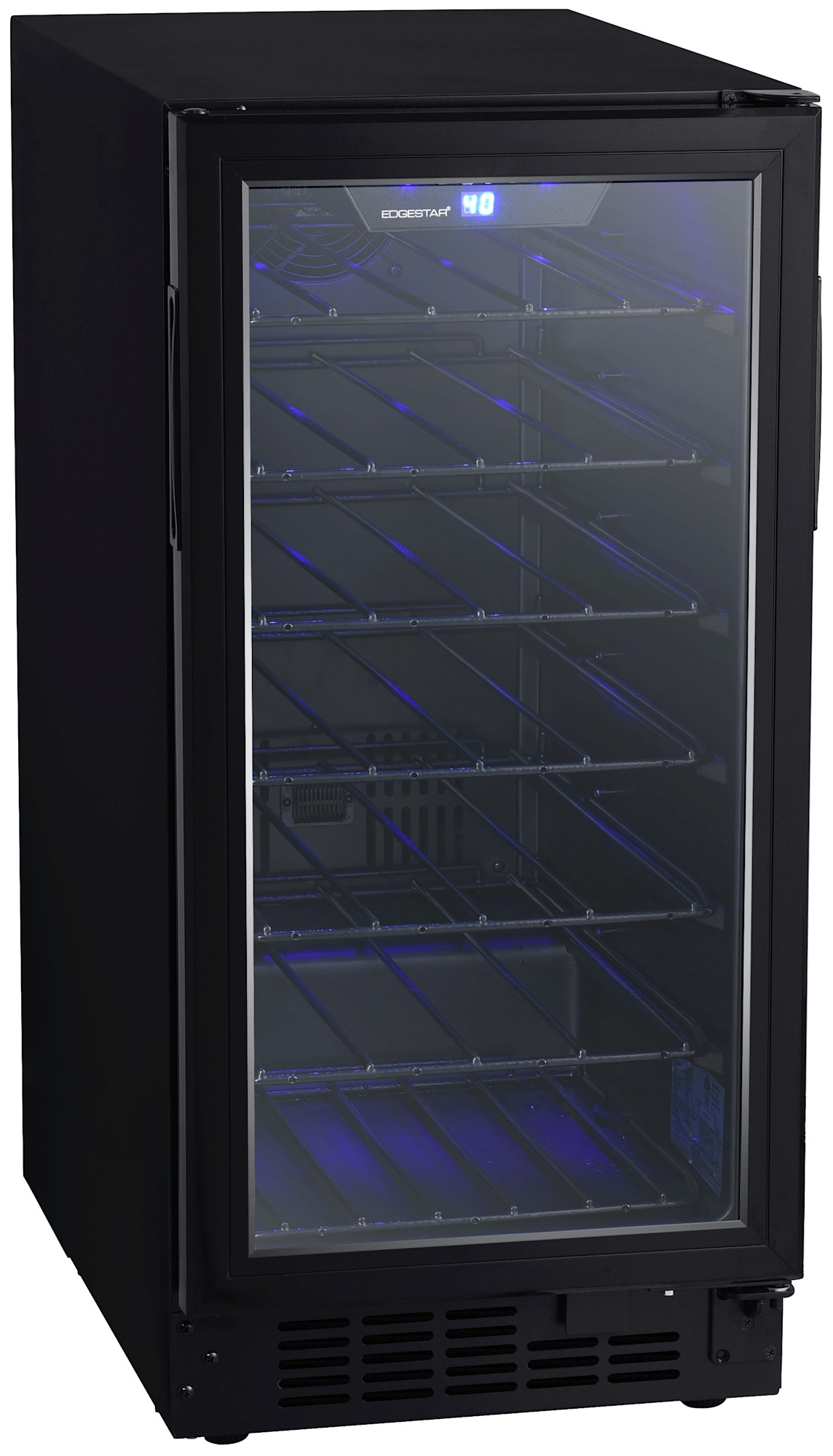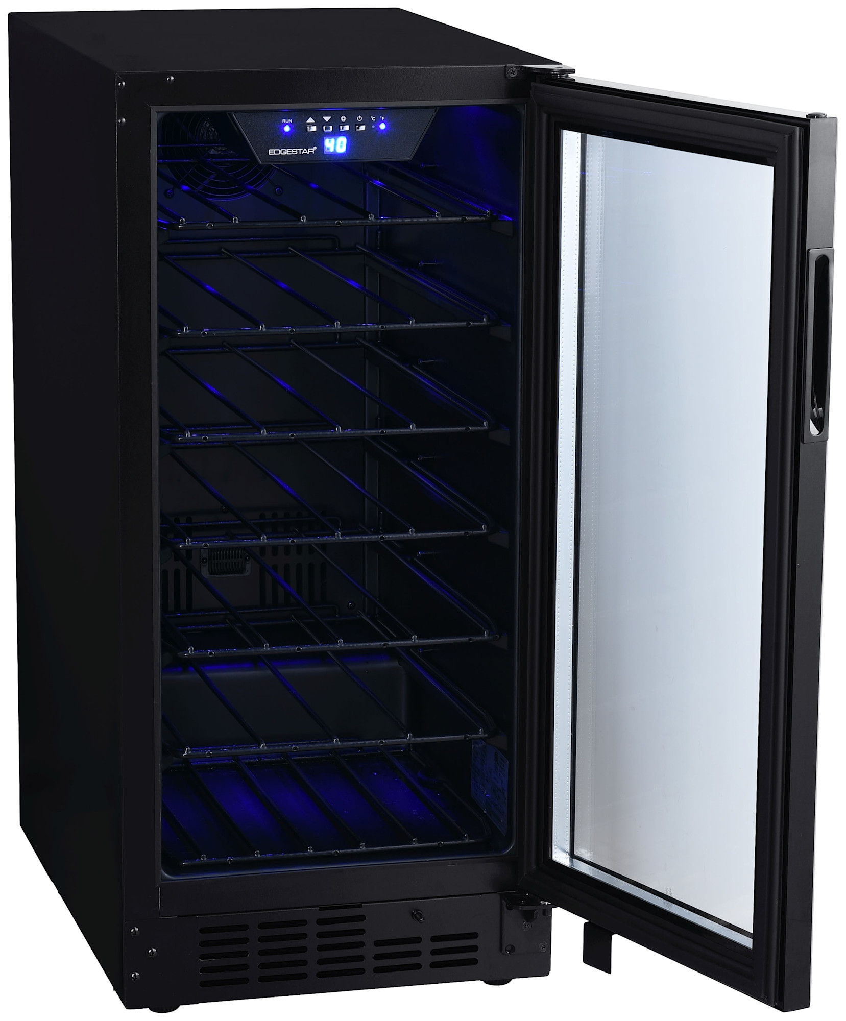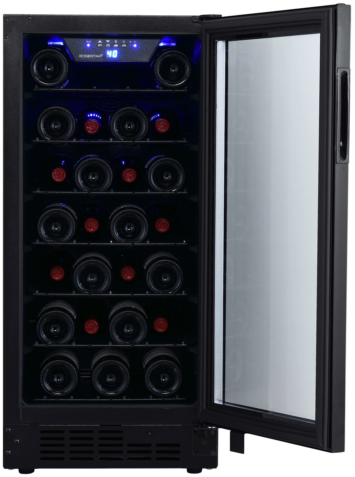 - LED lighting provides efficient and vibrant lighting for viewing wine collection