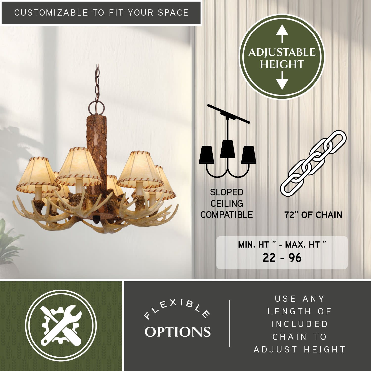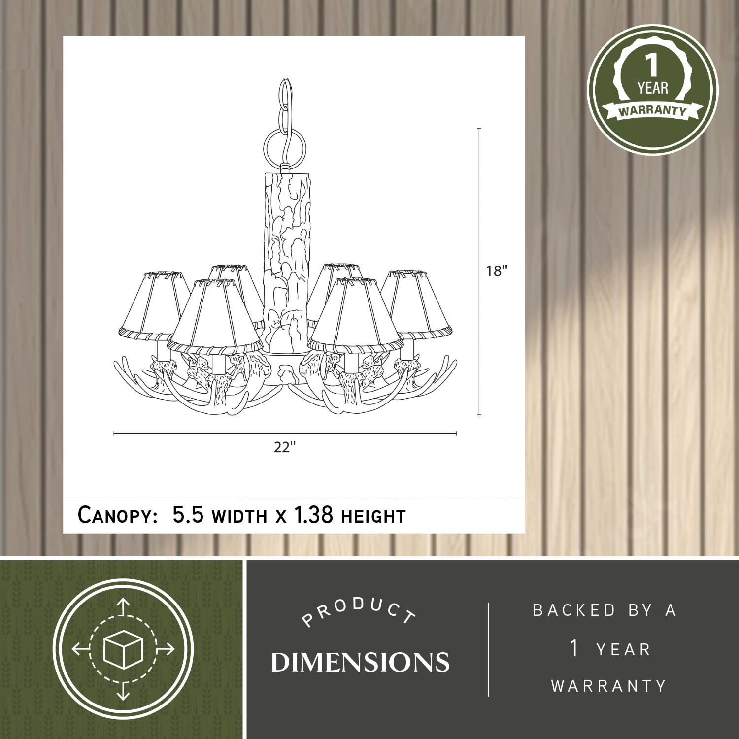 - Chandelier Dimensions: 18" x 22" (H x Dia.)