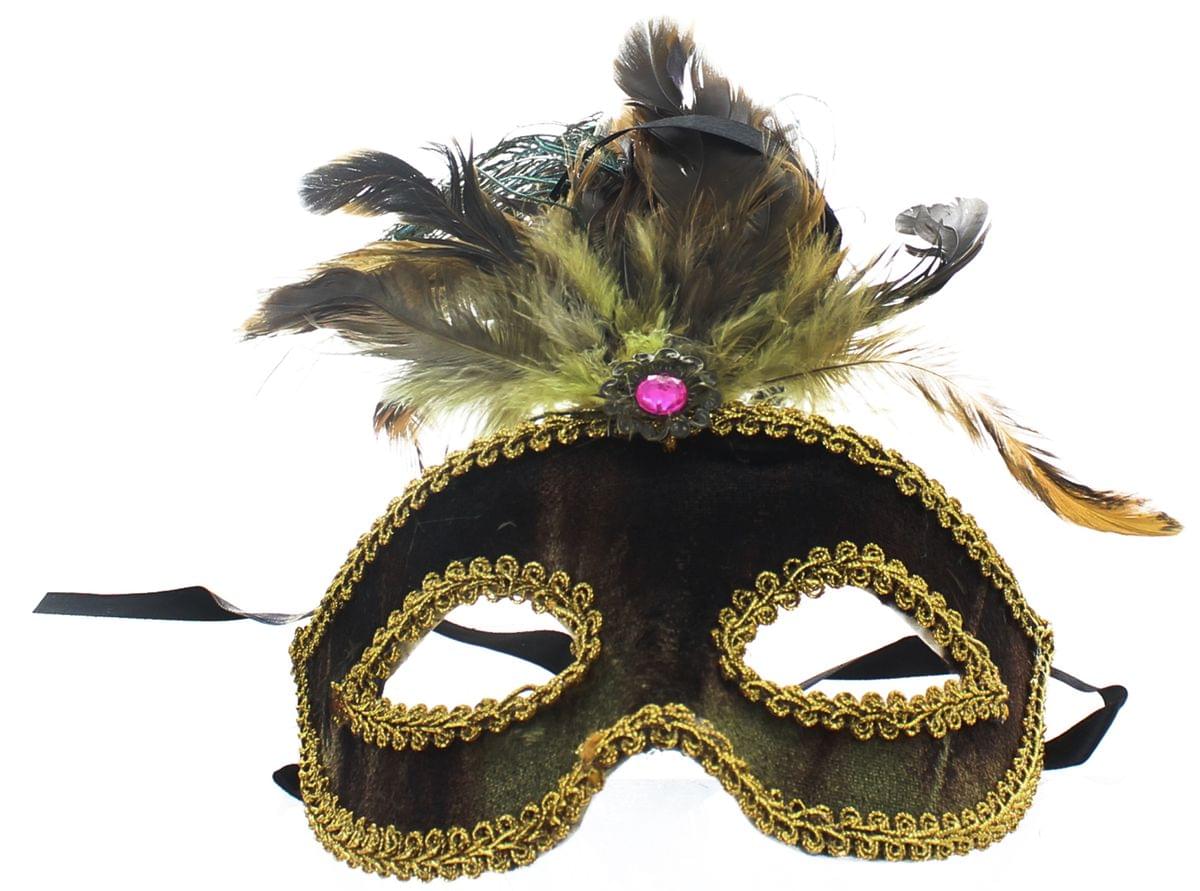 Safari Eye Venetian Mardi Gras Mask w/ Peacock Feathers: Brown