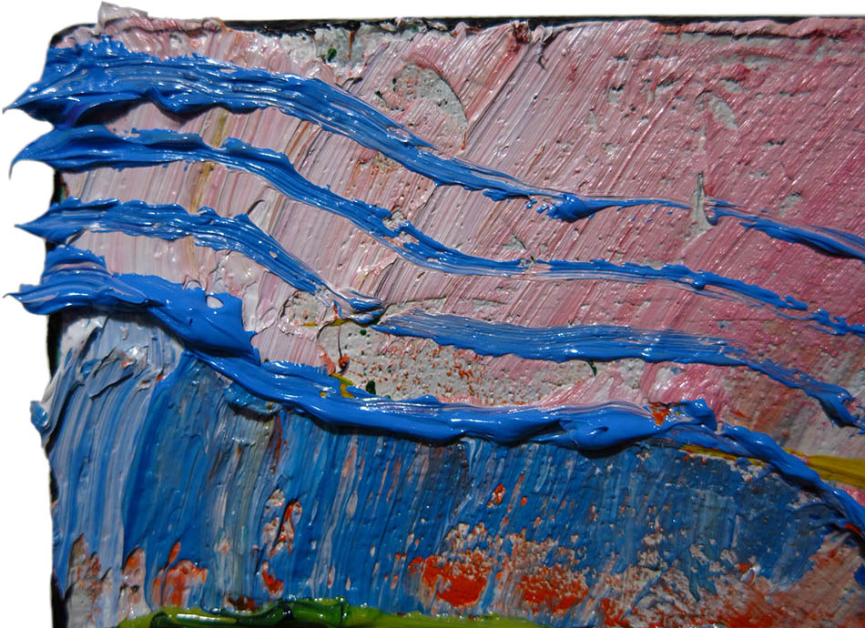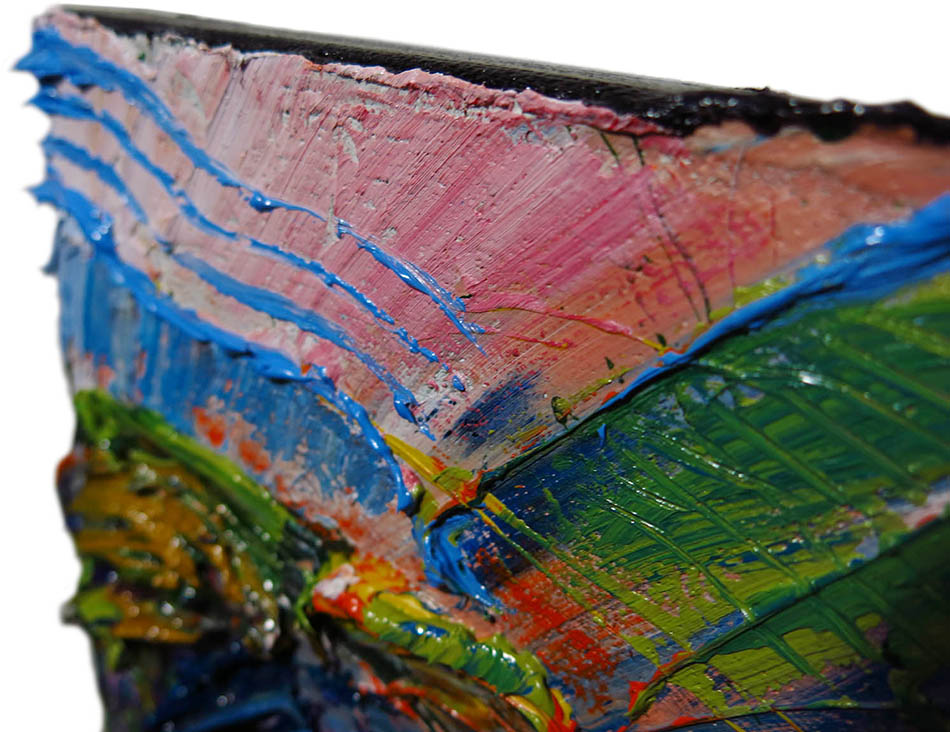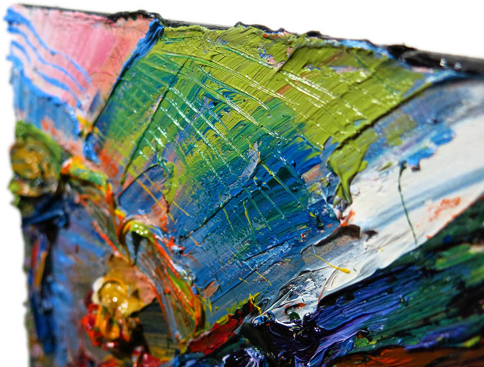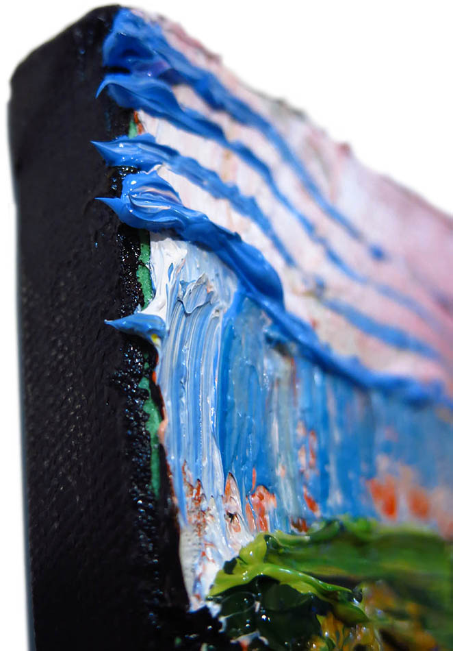 including hanging clip. This painting is pre-stretched and sides of the canvas are painted (see images below). Each of the sides are painted differently, to read more about why each is painted in a unique manner please