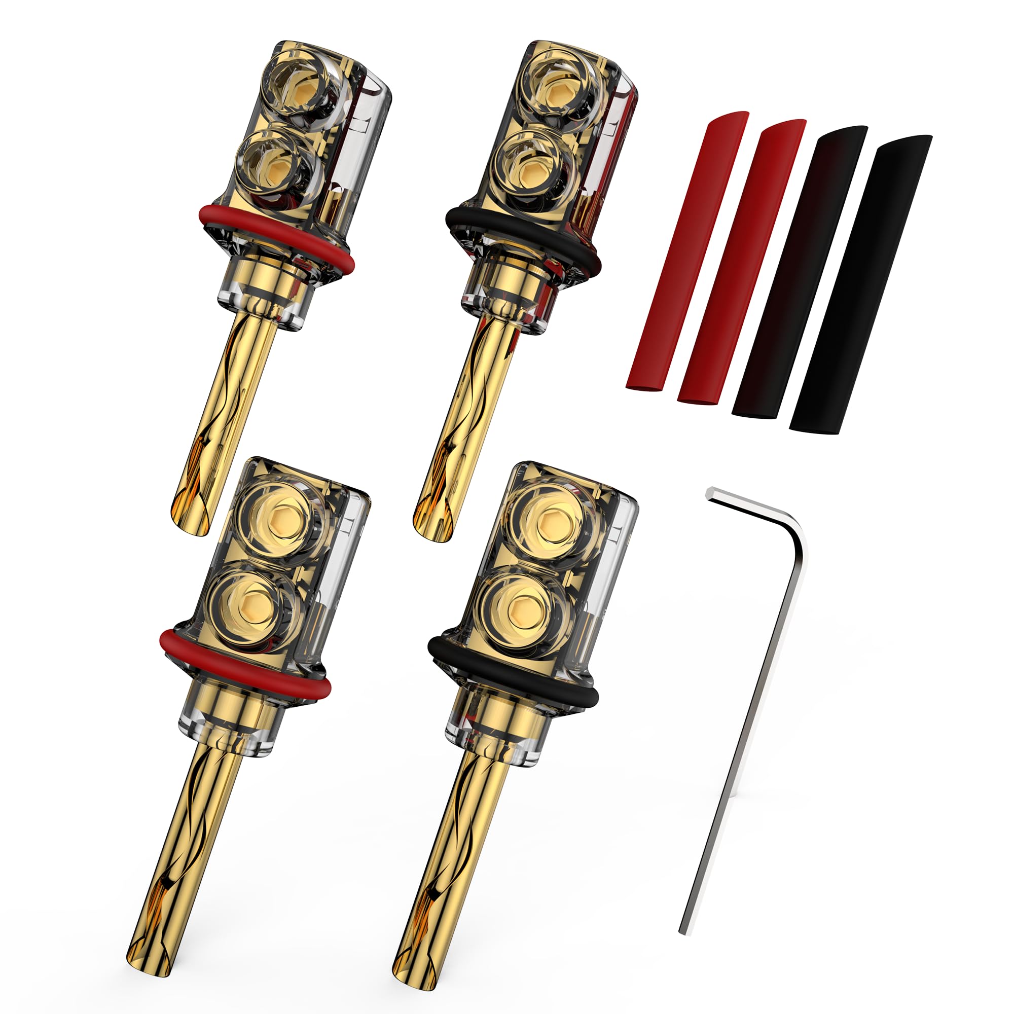 【Complete package for easy installation】- Each package includes 2 black and 2 red 24K gold-plated BFA banana plugs, along with heat shrink tubing and an Allen wrench. The heat shrink tubing provides additional protection and insulation for the banana connectors, ensuring a reliable and long-lasting connection. The Allen wrench makes it easy to tighten and secure the speaker banana connectors on your speaker cables. With this complete package, you have everything you need for a hassle-free installation process.