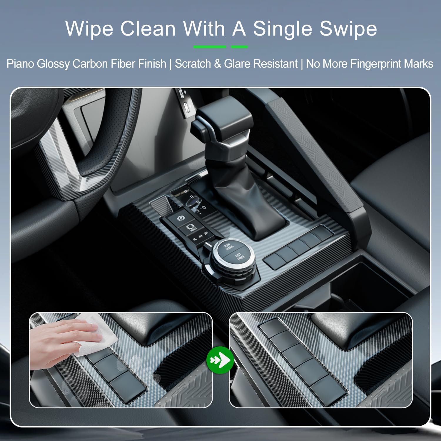 4PCS Glossy Carbon Fiber Center Console Interior Decoration Trim Compatible with 24-26 Toyota Tacoma One-Touch Hidden Storage Box