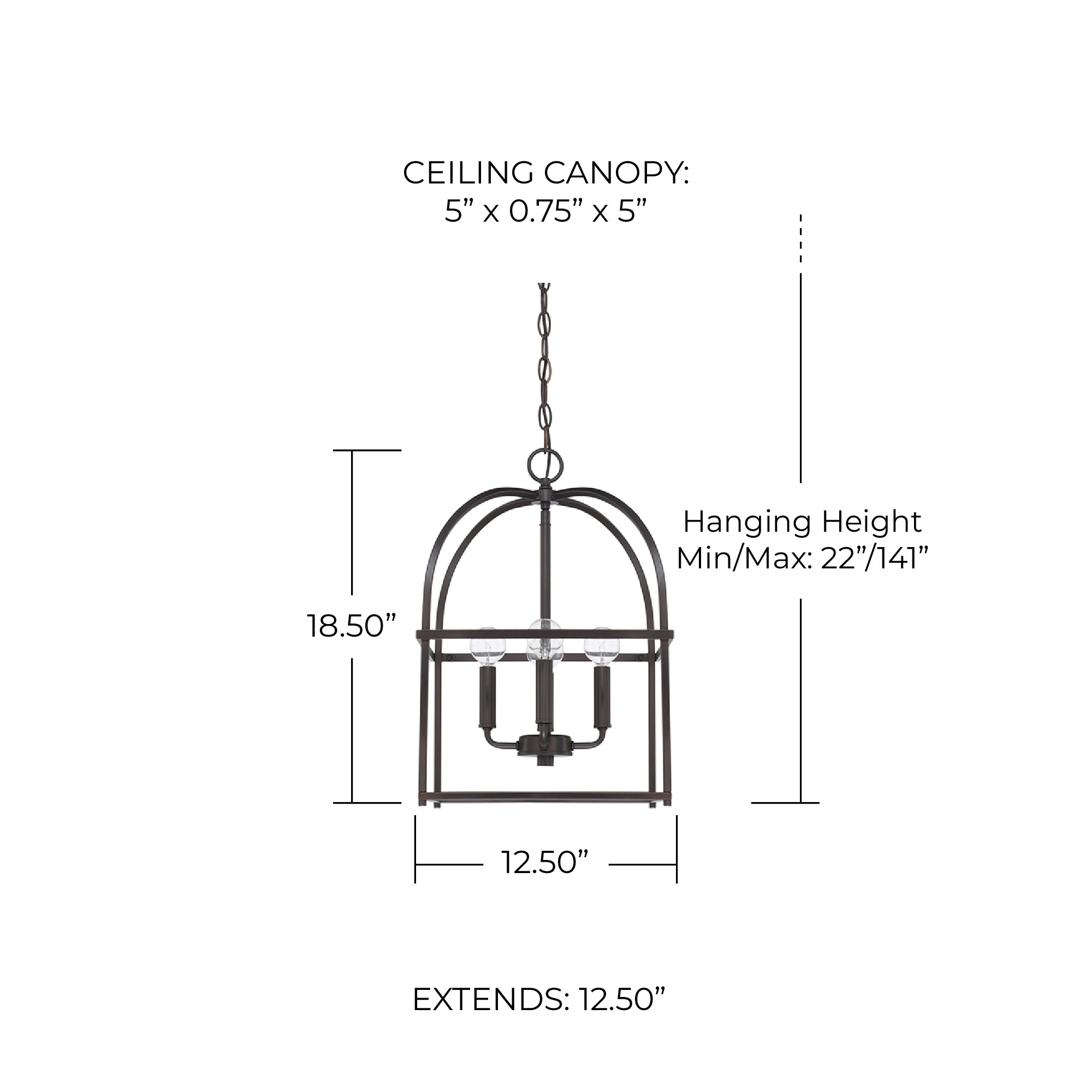 - Maximum Hanging Height: 141"