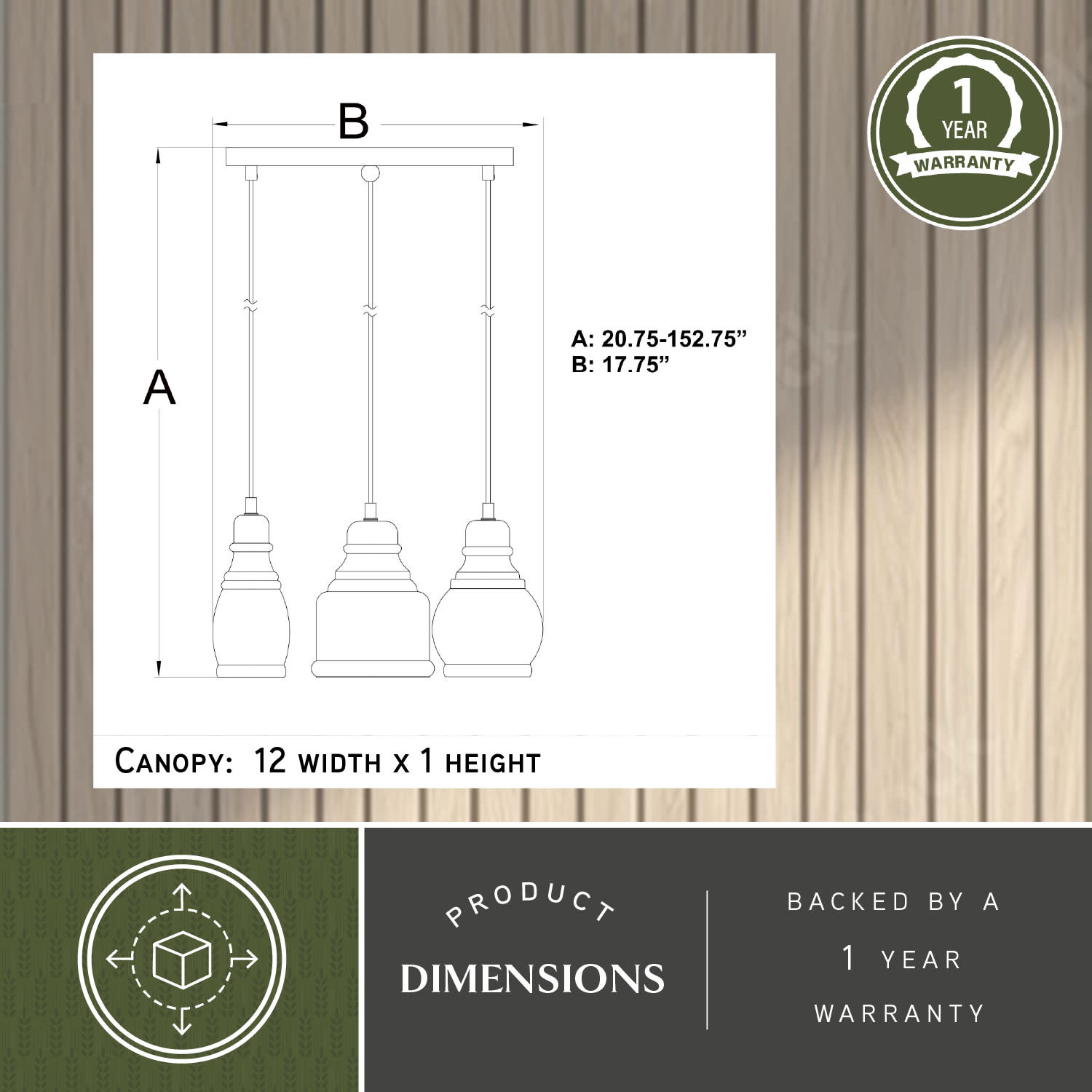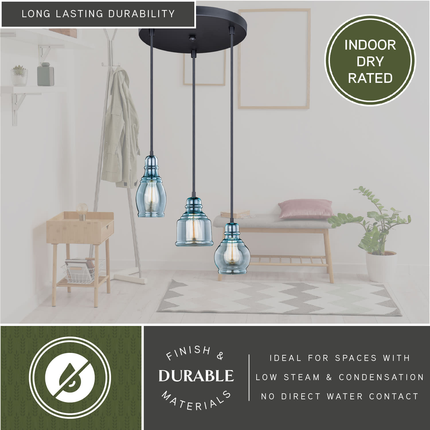 - Requires (3) 60 watt max medium (E26) bulbs