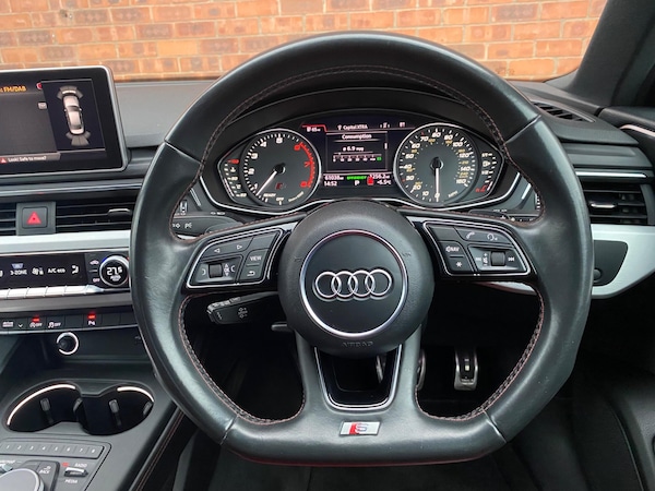2 KEYS+ RED LEATHERS+SERVICESERVICE INTERVALS AT 41K, 49K, 51K, 60KFRONT HEATED SEATS + RED LEATHERS This 2017 Audi S4 TFSI V6 presents an exceptional opportunity with its remarkably low mileage of just 60975 miles for its age. This sophisticated saloon boasts a powerful 3.0 litre petrol engine, delivering exhilarating performance through its four wheel drive system. As a Euro 6 compliant vehicle, it meets modern emission standards. The S4 is equipped with striking LED headlights and LED rear lights, featuring dynamic rear indicators for enhanced visibility. Inside, you'll find the convenience of a Bluetooth interface, a light and rain sensor that automatically activates the headlights, and heated front seats for added comfort. Parking is made effortless with the Parking System Plus, offering sensors at both the front and rear.The Audi S4 TFSI V6 stands out with its impressive acceleration, achieving 0-60mph in a mere 4.5 seconds, a testament to its potent engineering. This performance, combined with its low insurance group, indicates that this vehicle offers a superior driving experience compared to many others in its class. The combination of its advanced features, low mileage, and strong performance credentials makes this Audi S4 a compelling choice for those seeking a blend of luxury, power, and practicality.