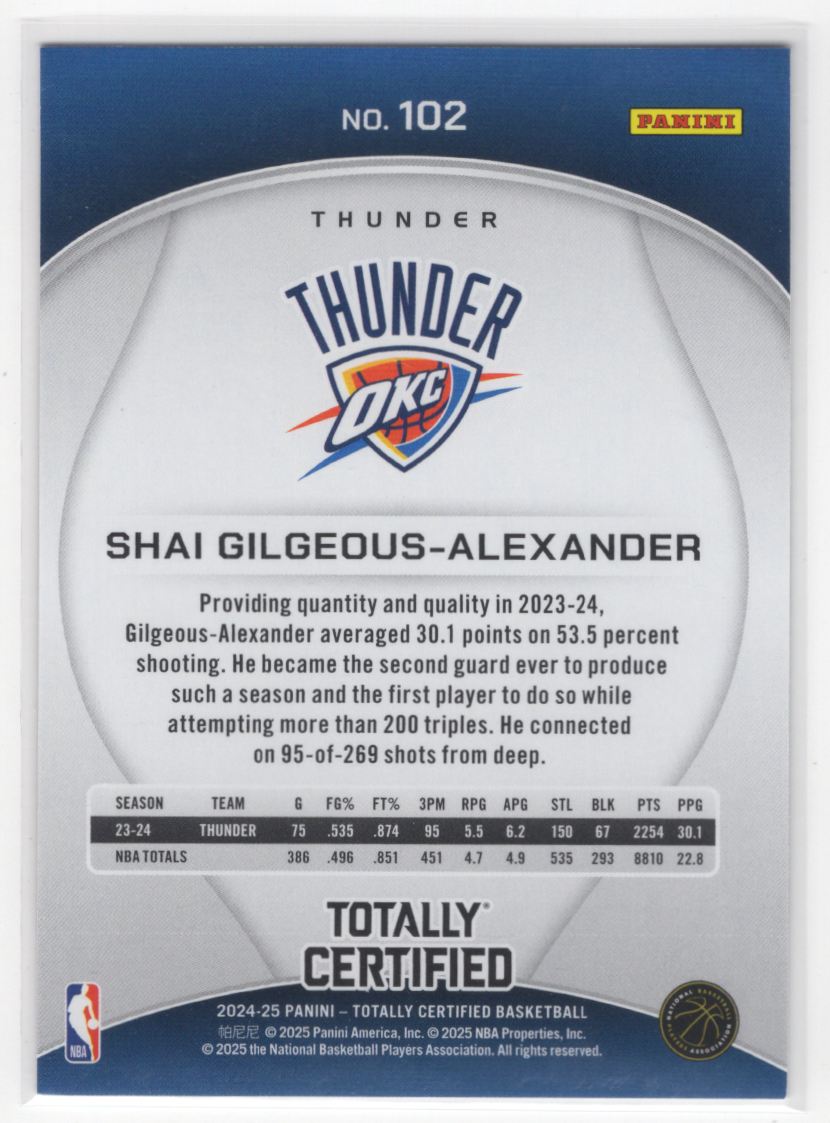 #102 Shai Gilgeous-Alexander 2024-25 Totally Certified Mirror Base >